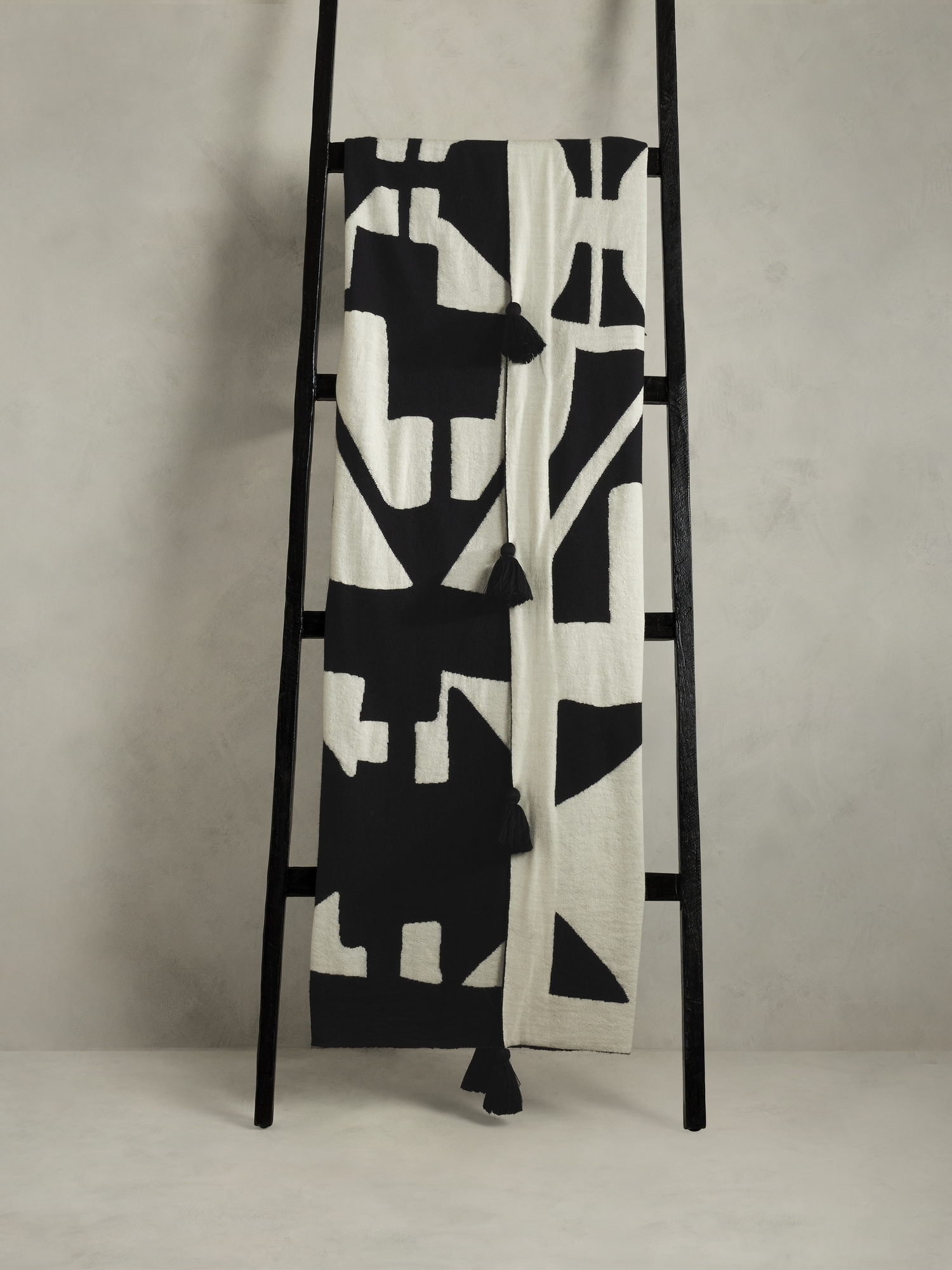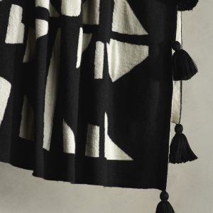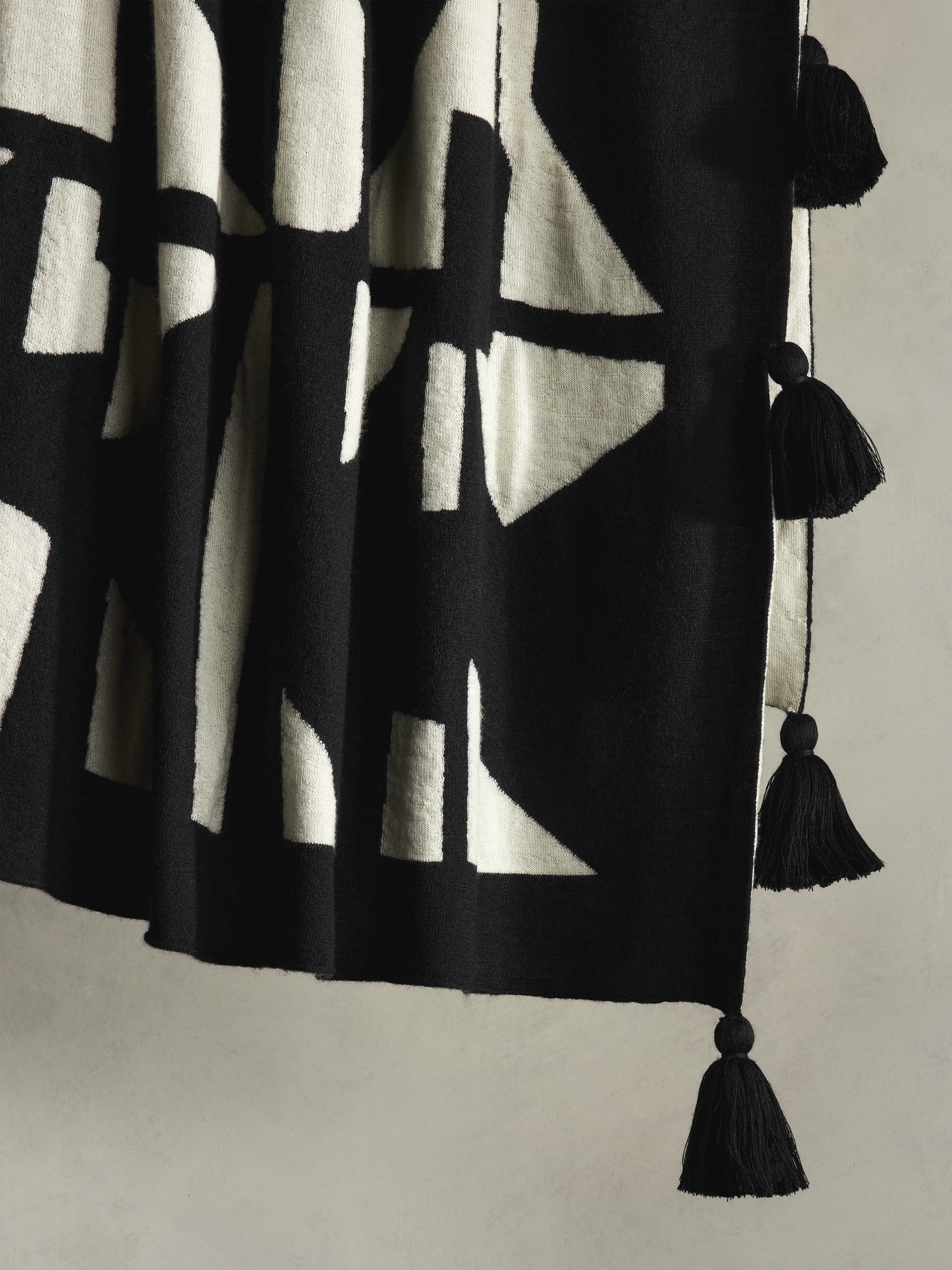 Bold, graphic motifs rendered in silky-soft merino wool. Sourced from ultrafine Merino wool, our indulgently soft throw is woven on a double-knit machine for thickness and detailed with oversized tassels and a striking graphic motif for statement-making impact. Tassel detail. Handmade in India #826262