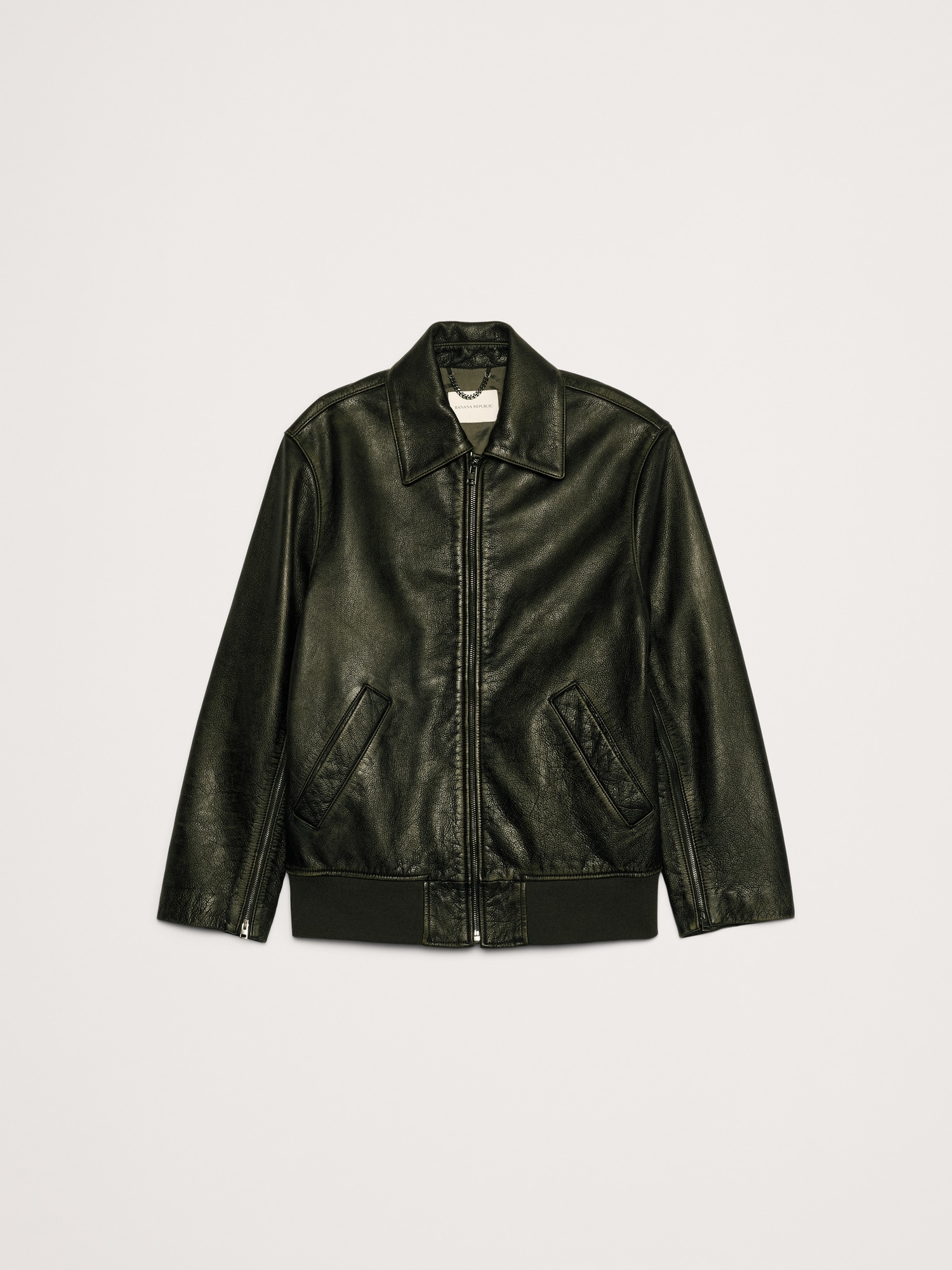 We looked to the archives to style this luxurious leather jacket. The style itself is classic and the silhouette is ever-so-oversized because the distressed leather here is special enough.