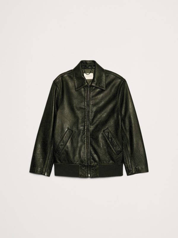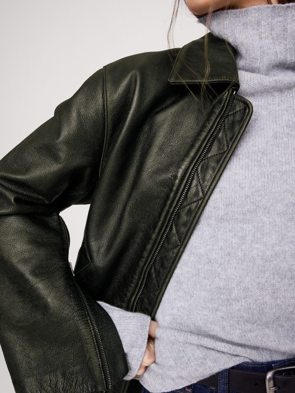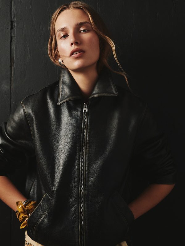 We looked to the archives to style this luxurious leather jacket. The style itself is classic and the silhouette is ever-so-oversized because the distressed leather here is special enough.