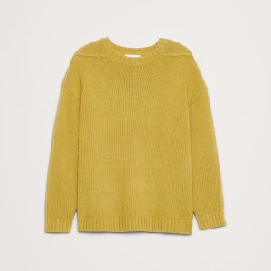 We used a paneled construction to put a spin on the classic, crew-neck sweater. Cut here in an oversized silhouette from a soft and warm Merino wool and cotton yarn.
