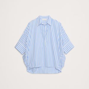You love this oversized shirt so much, we had to bring it back. This popover shirt is crafted in our signature cotton poplin. We skipped the buttons this time, leaving the collar open for an at-ease effect. Style it with easy linen pants and sandals on warm days and pair with wide-leg jeans and boots on cooler days.