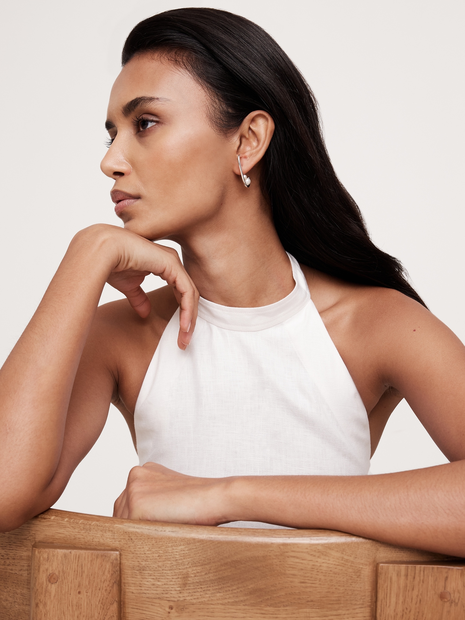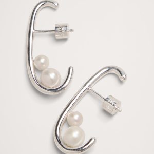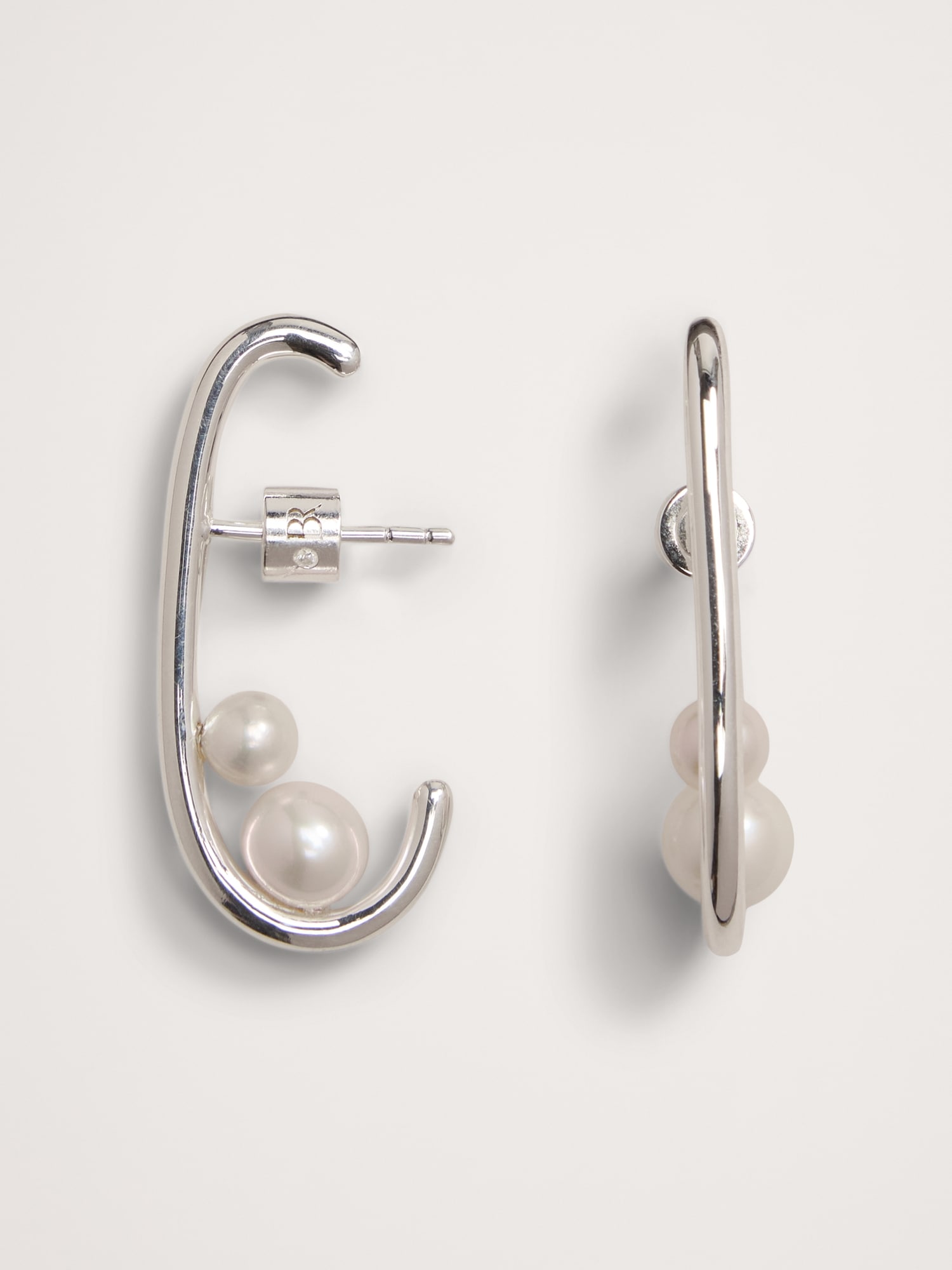 Demi-lune hoop earrings holding a duo of pearl accents finished in 999-silver plated brass.