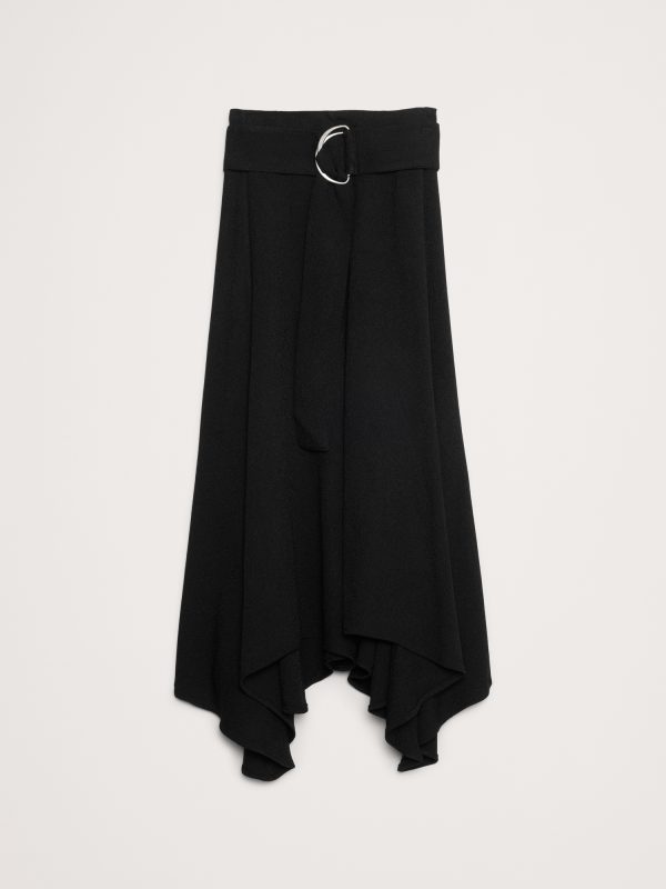 One of our favorite skirts to style this season. We love the handkerchief hem, adjustable slider belt, and the luxe, crepe fabric (it has a pebbled texture so it hangs beautifully).