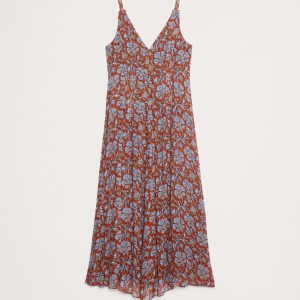 There’s so much to love about this maxi dress: the flowing silhouette, the low back, the adjustable slider straps, and the delicate pintucks. Cut in a matte, printed fabric that’s easily dressed up or down.