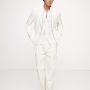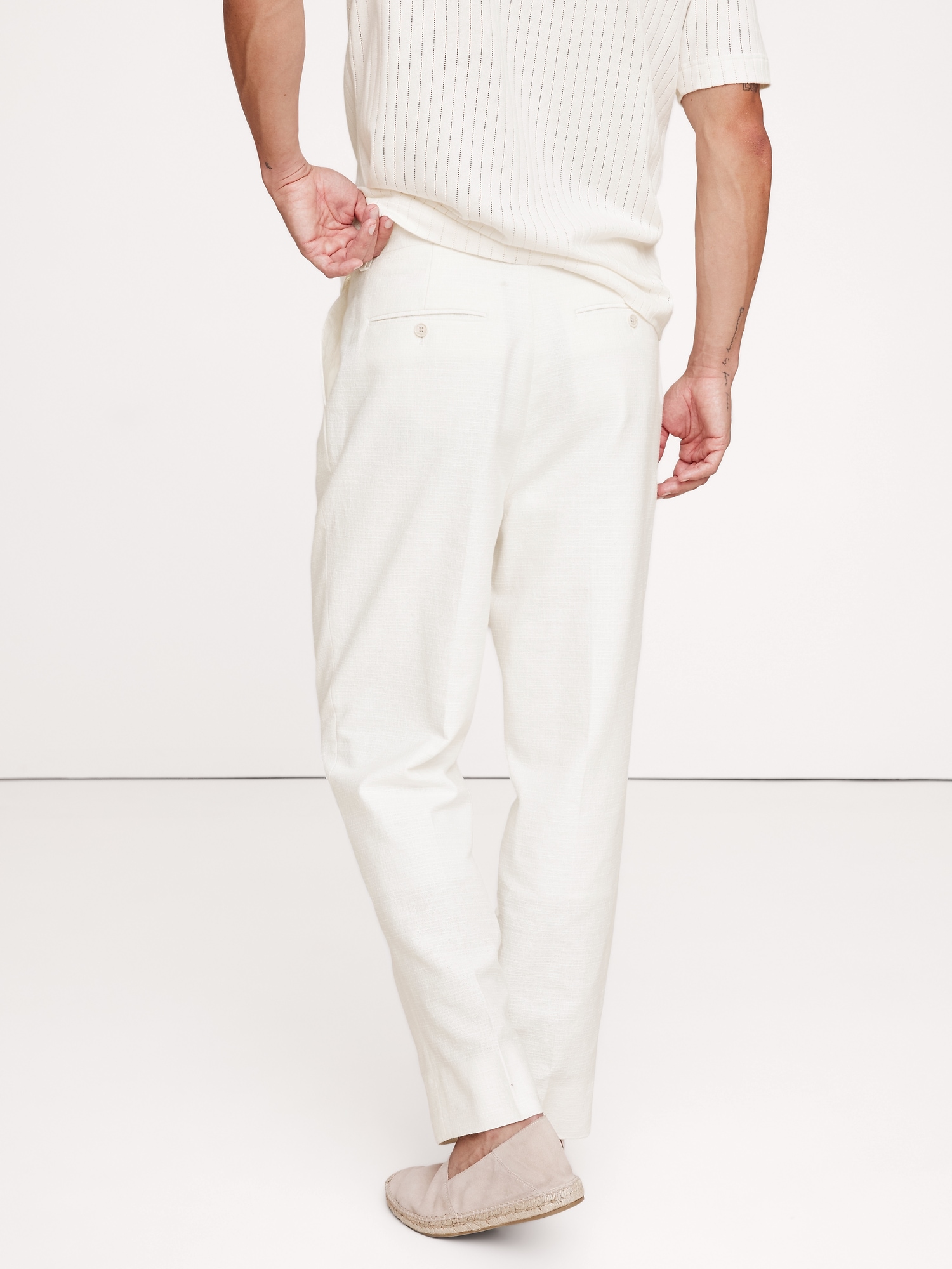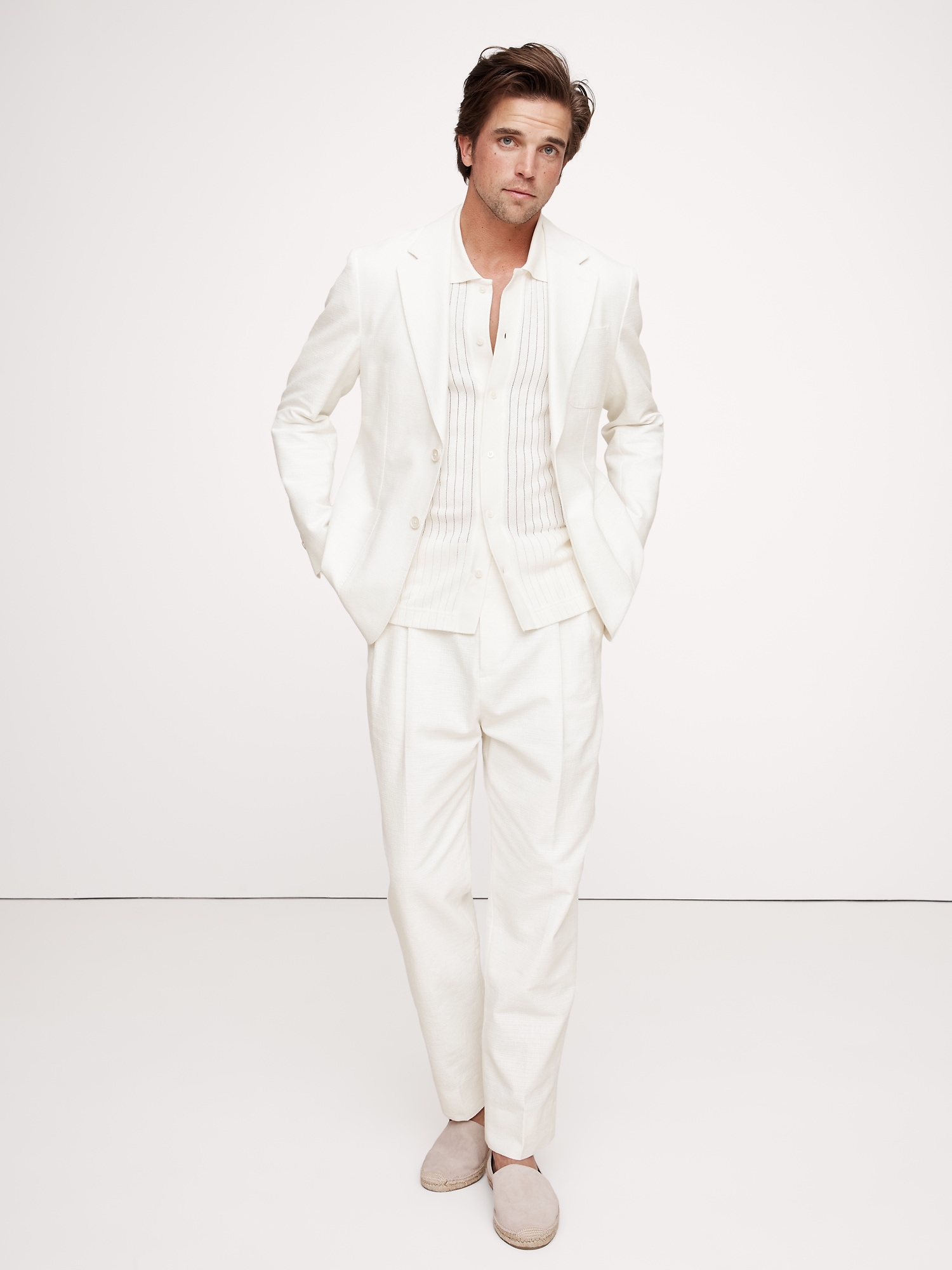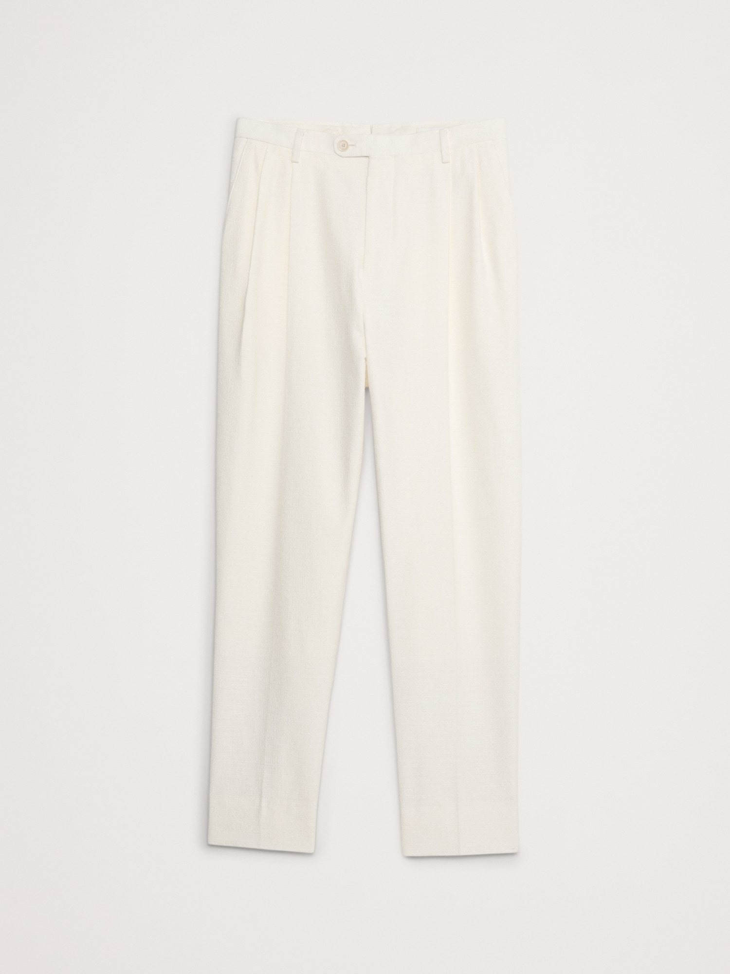Designed with warm climates in mind, this pleated suit pant is cut from a blend of linen, cotton, and viscose—seen here in a soft white. Wear it with the matching suit jacket—hello, wedding season.