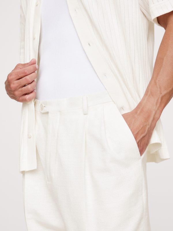 Designed with warm climates in mind, this pleated suit pant is cut from a blend of linen, cotton, and viscose—seen here in a soft white. Wear it with the matching suit jacket—hello, wedding season.