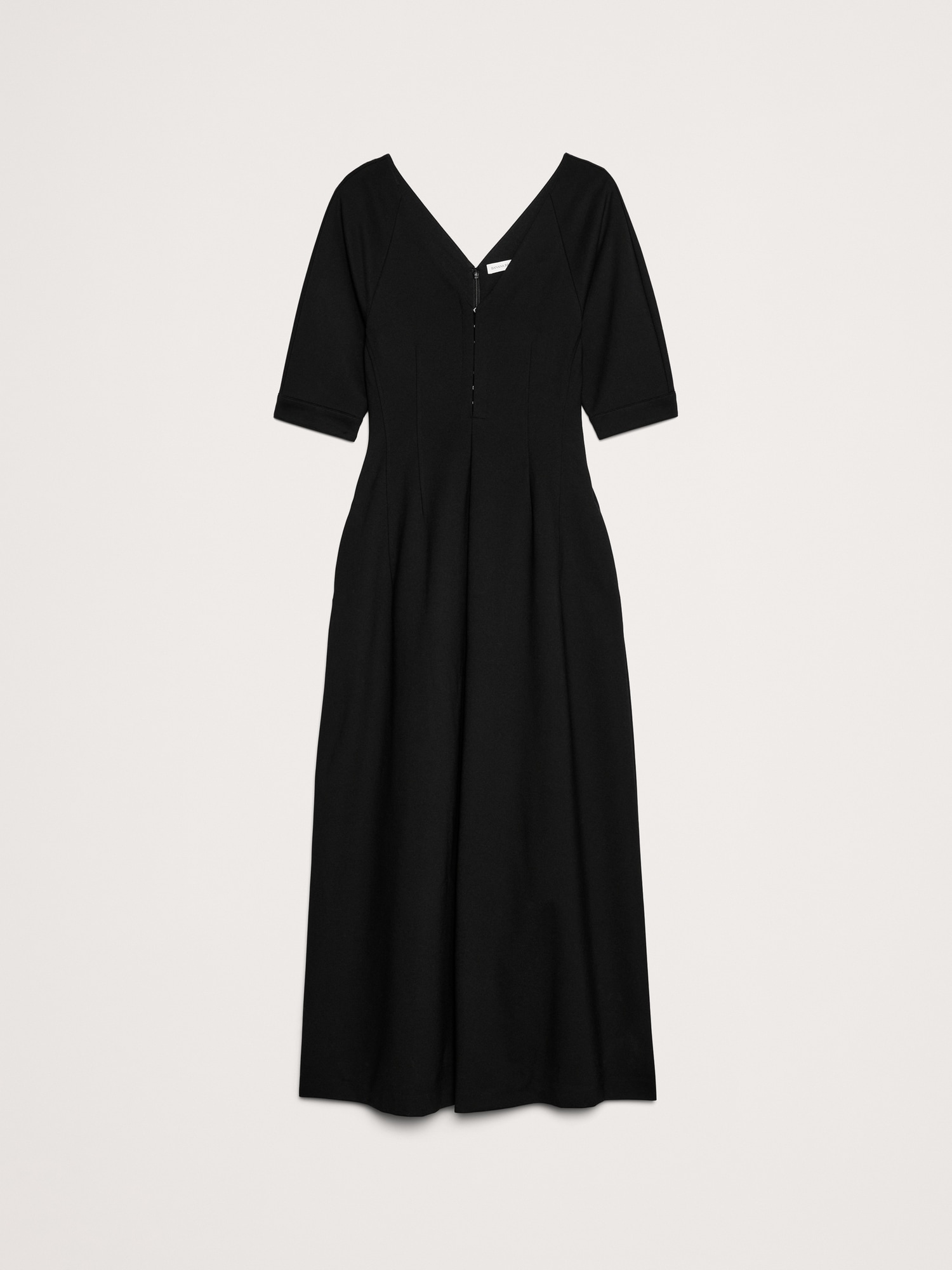 We designed this tailored maxi dress with darts at the waist and hook-and-eye closure at the front for a corset-inspired look. This one is made in one of our favorite ponte knits (so it’s super soft).