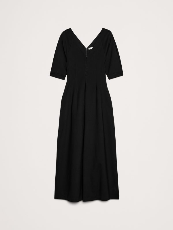 We designed this tailored maxi dress with darts at the waist and hook-and-eye closure at the front for a corset-inspired look. This one is made in one of our favorite ponte knits (so it’s super soft).