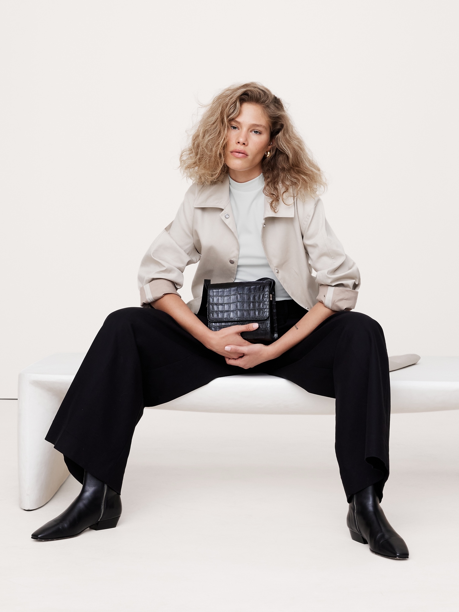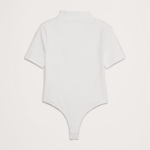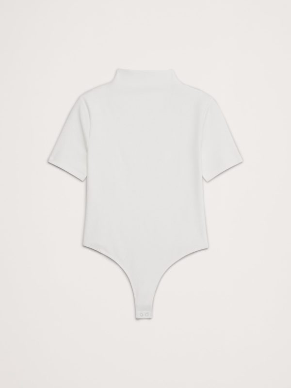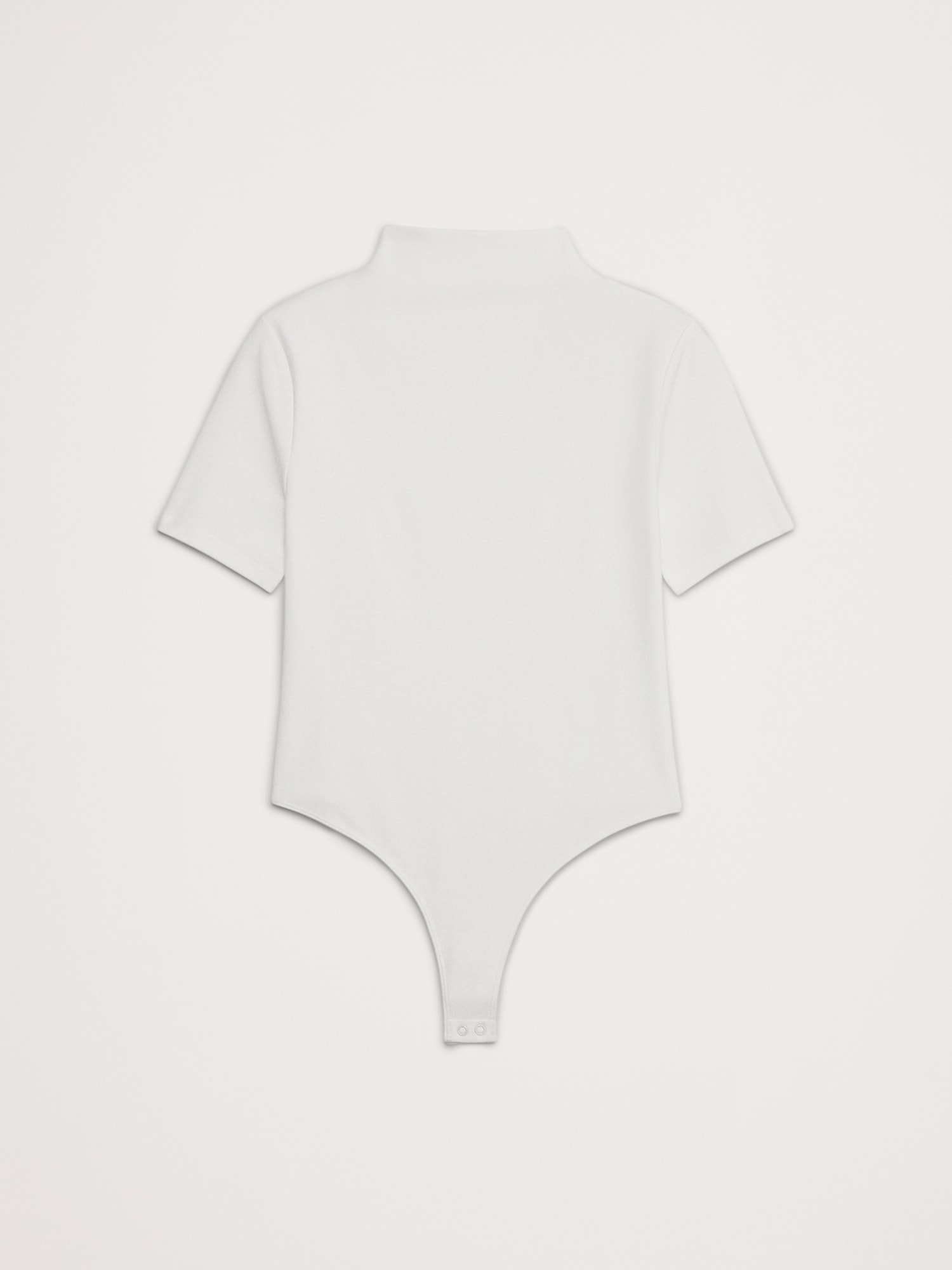 Soft and sleek, this cotton bodysuit is fortified with a high-stretch fabrication and a mock-neck silhouette so it transitions easily through the seasons.