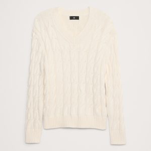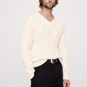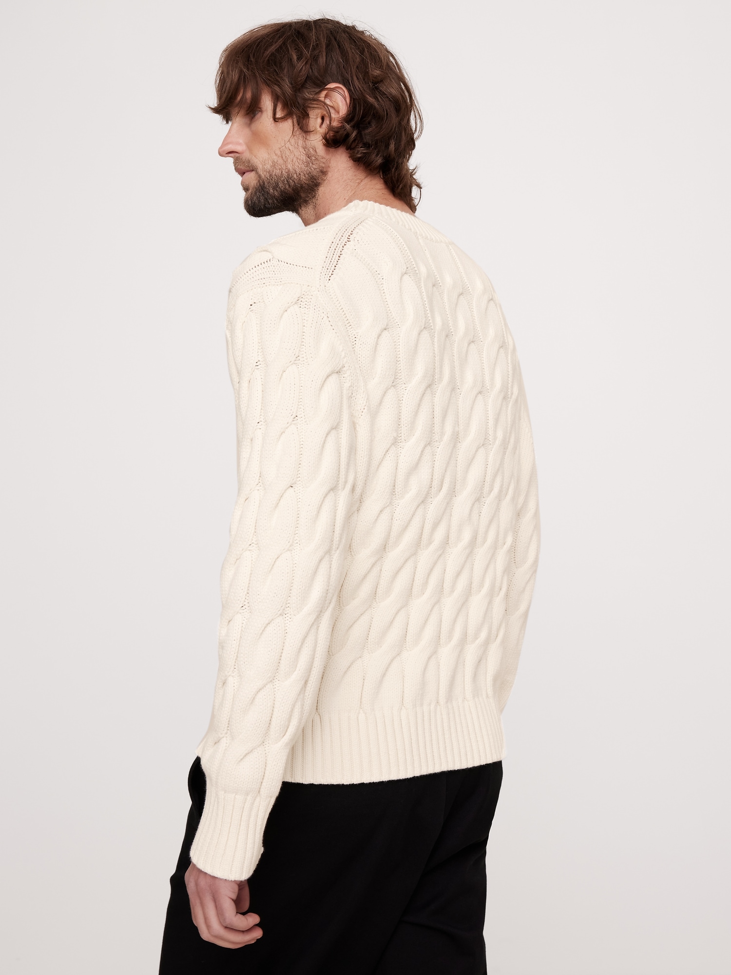 We wanted this sweater to feel like the best vintage V-necks so we kept the fit relaxed and opted for a dimensional cable-knit pattern. Since it’s made from a cotton blend, it’ll keep you warm—and well-dressed—for seasons to come.