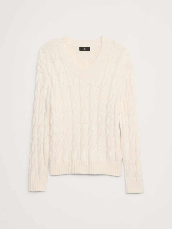 Relaxed Cable-Knit Cotton-Blend V-Neck Sweater
