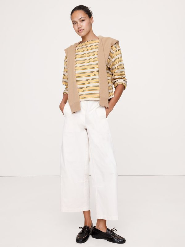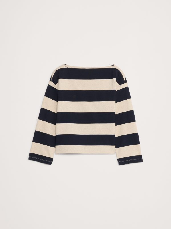A boatneck t-shirt in a rugged cotton fabric so it’s ideal in cooler seasons.