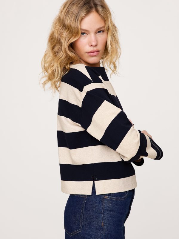 A boatneck t-shirt in a rugged cotton fabric so it’s ideal in cooler seasons.