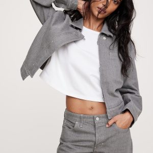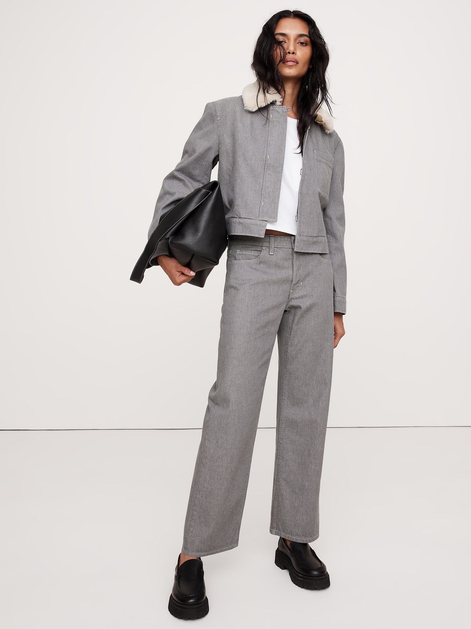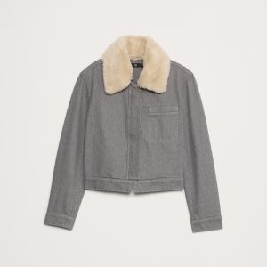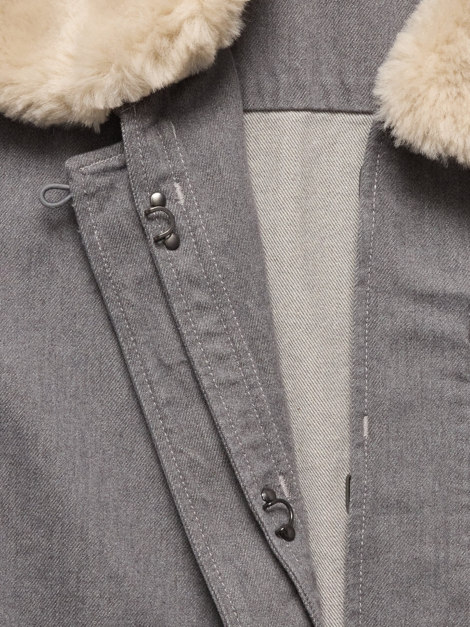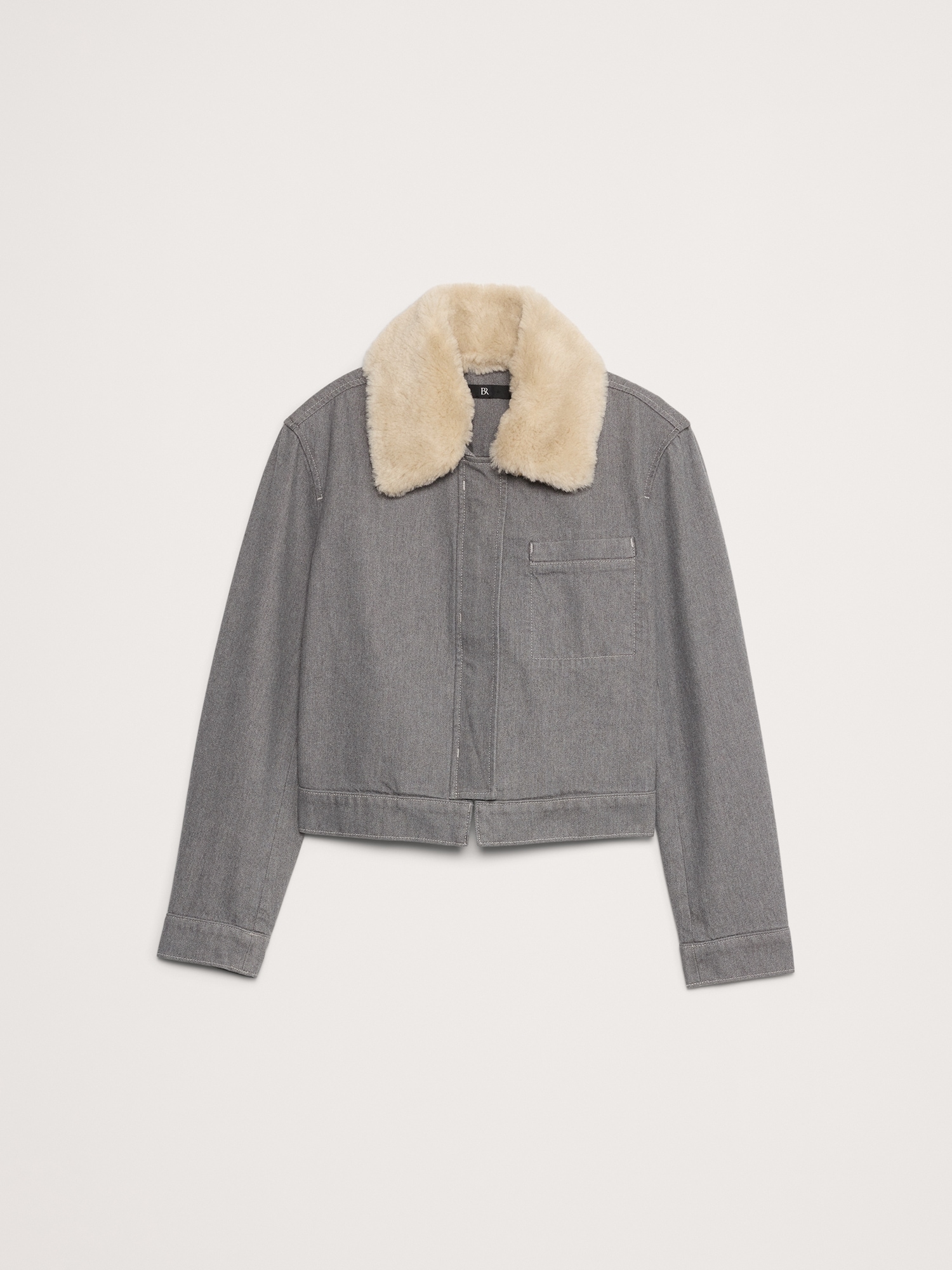 We love the look of old-school chore coats, which is what inspired us here. We updated the look with a removable faux-fur collar and a cropped length for easy layering.