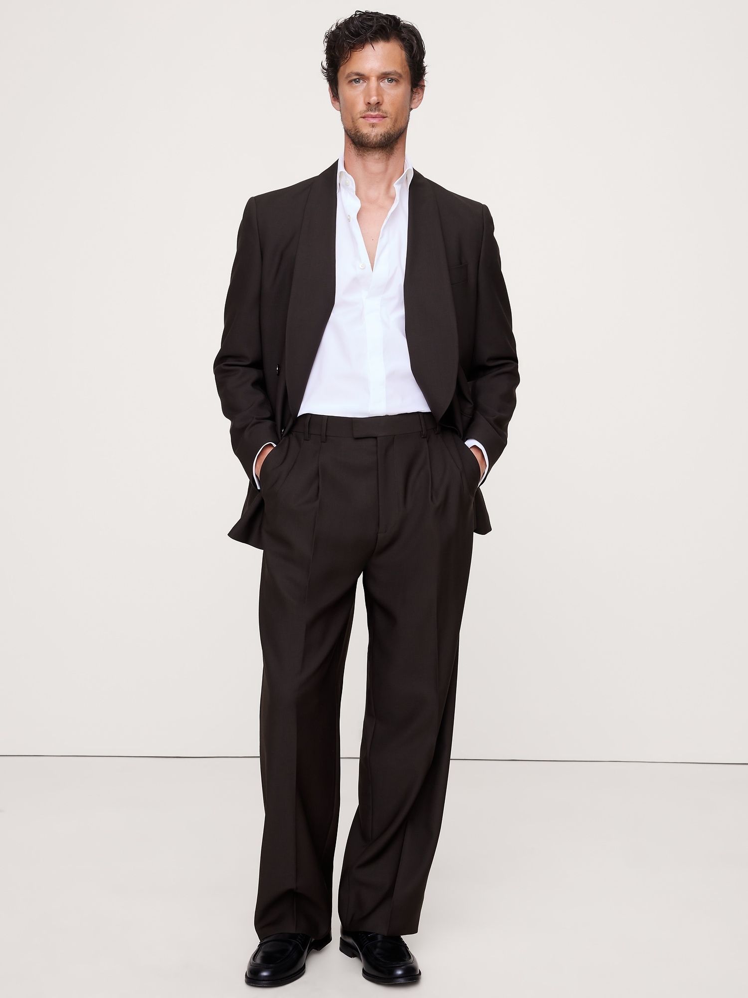 Relaxed Italian Barathea Pleated Tuxedo Pant