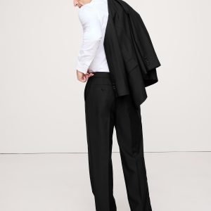 A very cool tuxedo. We kept the fit relaxed for these tuxedo pants, crafting them in a beautiful Italian wool barathea woven for us in Italy by famed Marzotto mill. Here, the fit is relaxed, but never sloppy with a straight leg and pleated front.