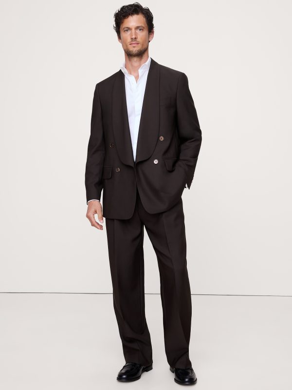 A very cool tuxedo. We kept the fit relaxed for these tuxedo pants, crafting them in a beautiful Italian wool barathea woven for us in Italy by famed Marzotto mill. Here, the fit is relaxed, but never sloppy with a straight leg and pleated front.