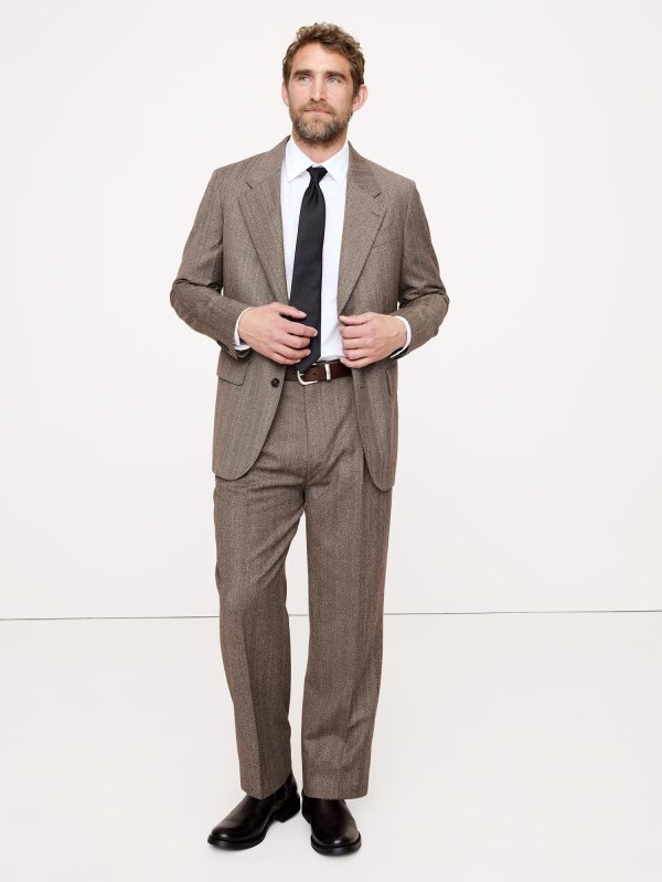 Designed with cooler climates in mind, this sleek suit jacket is cut from an Italian herringbone fabric woven from 100% wool.