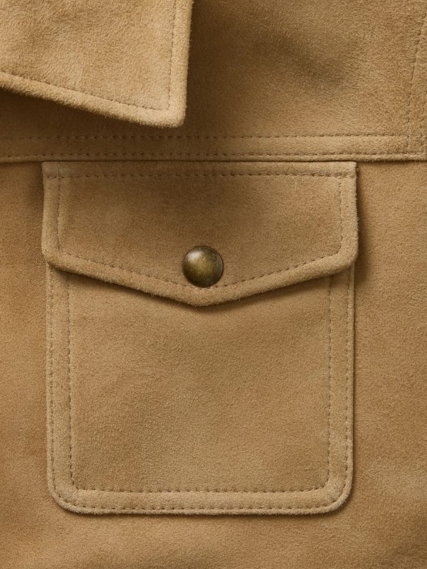 A luxurious take on a utilitarian staple, this suede jacket borrows its silhouette from classic trucker jean jackets. We kept the pocketing, snap buttons, and top-stitch detailing of the original, and rendered it in premium suede, made in one of the world’s most renowned ateliers. Plus, since it’s suede, it will only get better with time, developing a rich and unique patina.