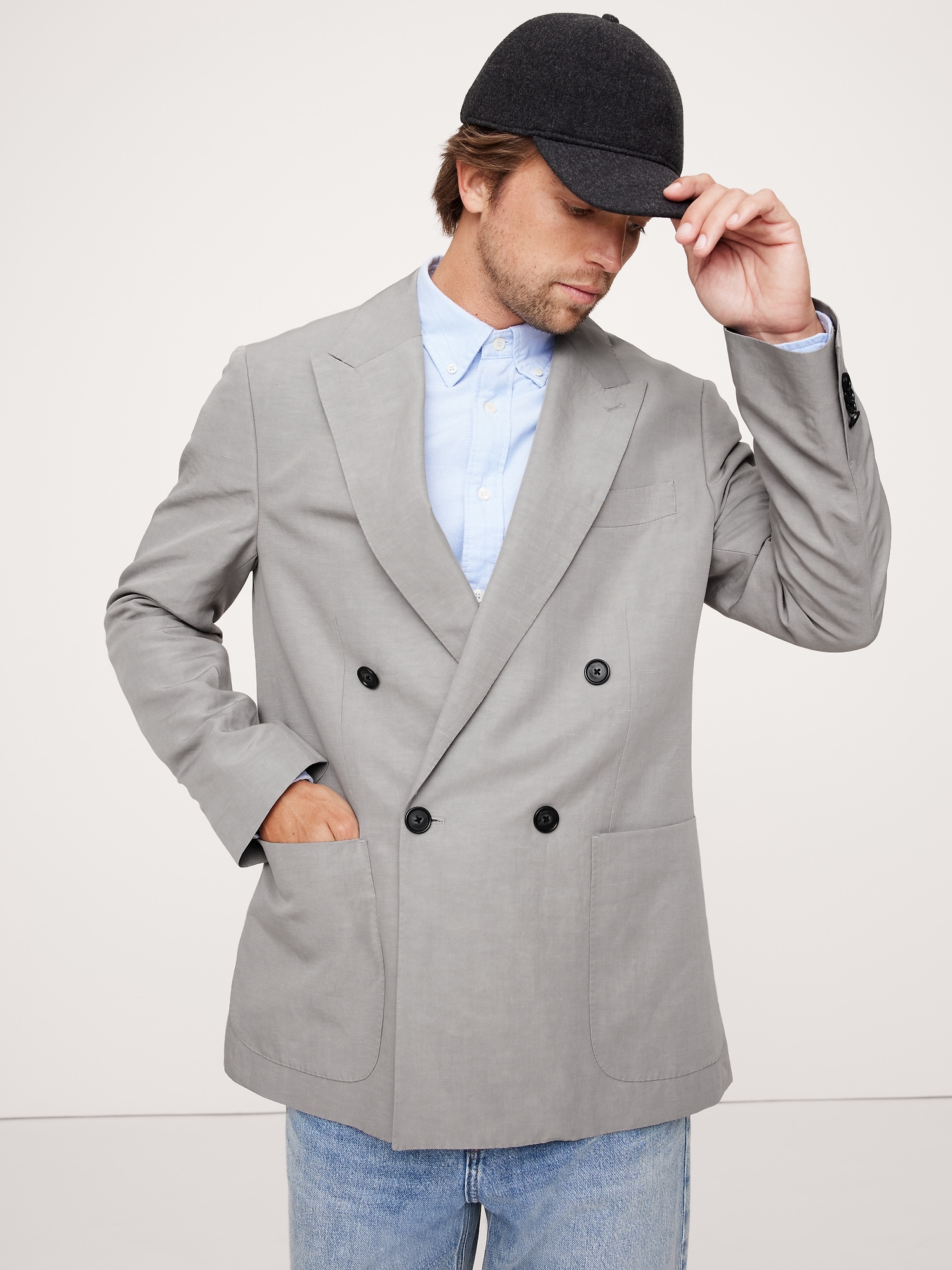 A very cool suit. We kept the fit relaxed for this double-breasted suit jacket, crafting it in a silky blend of TENCEL™ lyocell and luxurious linen—an ideal choice in heat and humidity.