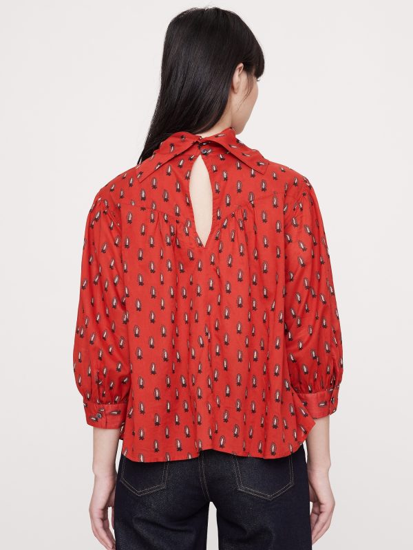 Deconstructed, reconstructed. We flipped the classic Western shirt back-to-front to give it a mock-neck silhouette. Here, in soft cotton lawn. Relaxed fit: Relaxed fit through shoulders, chest and waist. Mock neck with button placket at back. Western yoke detailing. Straight hem. Unlined. #826102