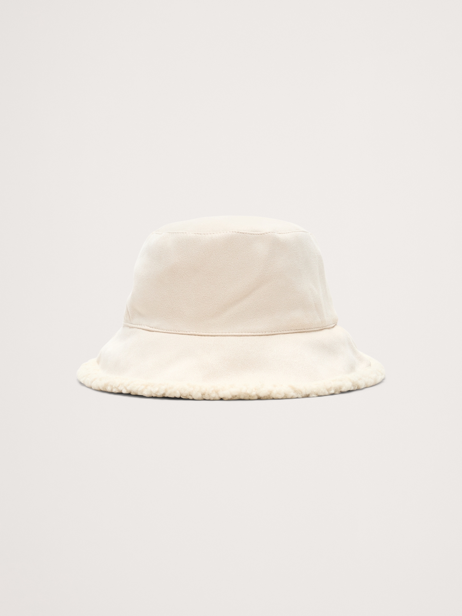 A classic bucket hat, in cold-weather ready sherpa that reverses to sturdy faux-suede.