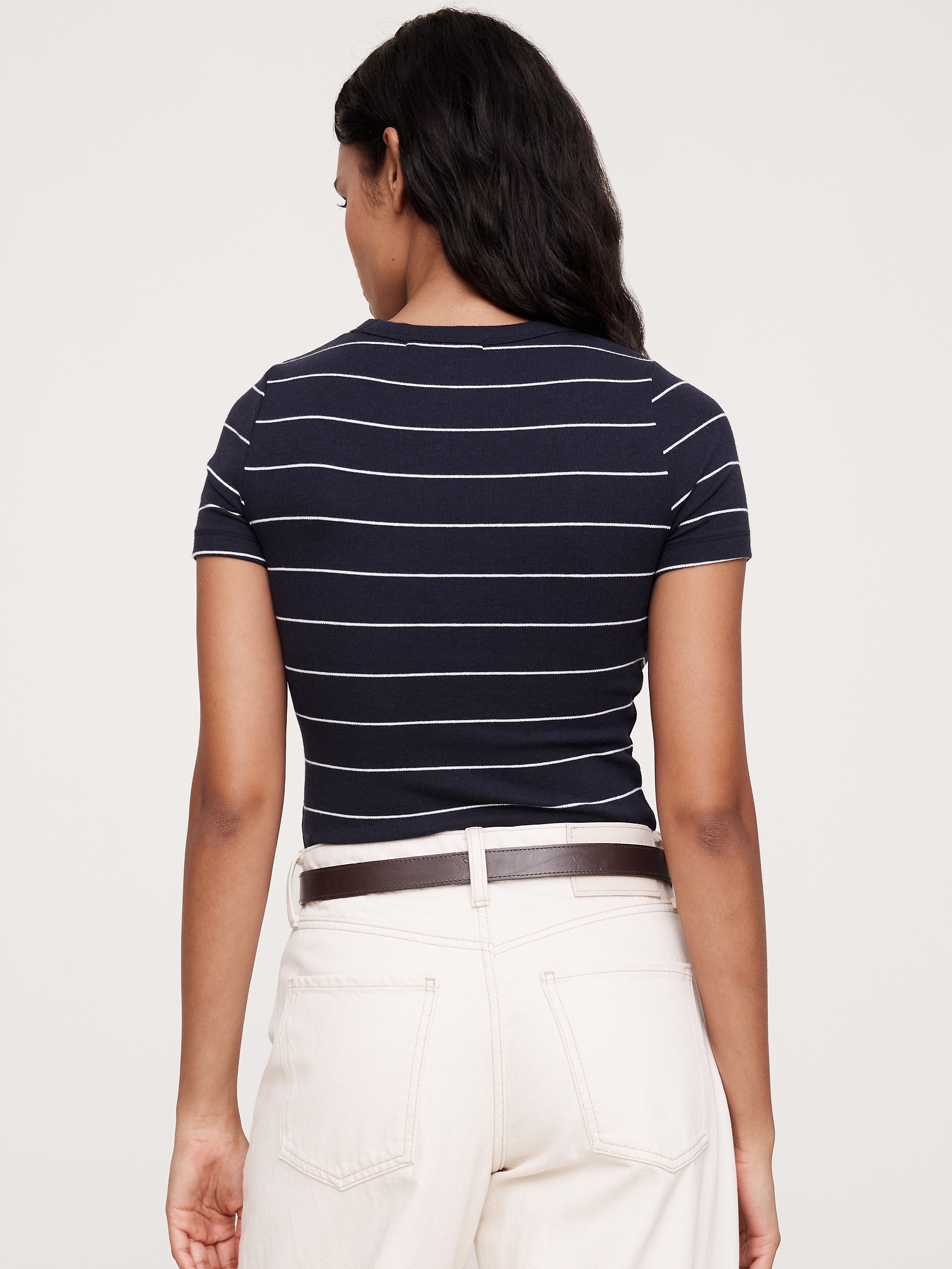 Our take on the baby-tee, cut from a soft and oh-so-stretchy ribbed knit.
