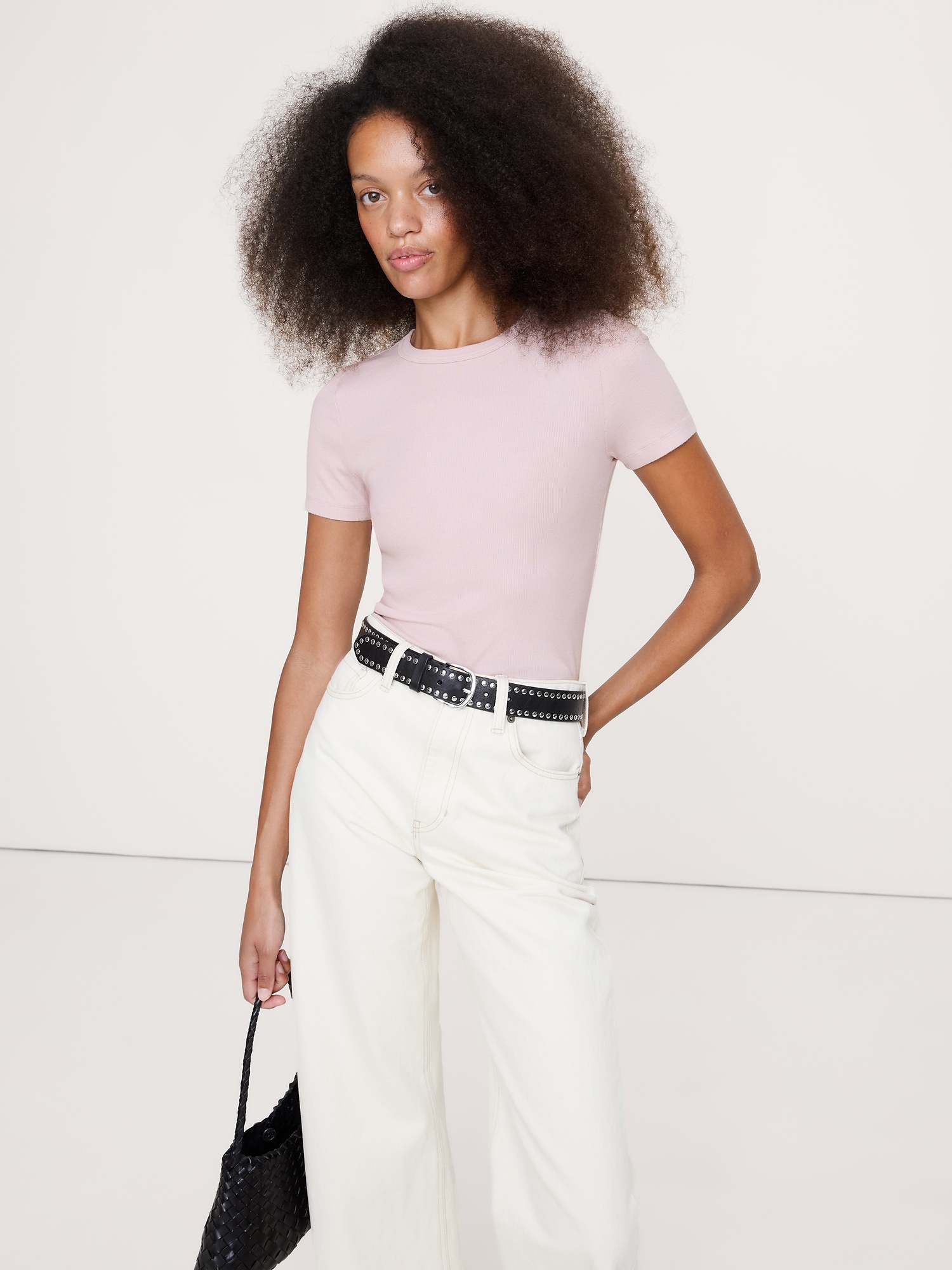 Our take on the baby-tee, cut from a soft and oh-so-stretchy ribbed knit.