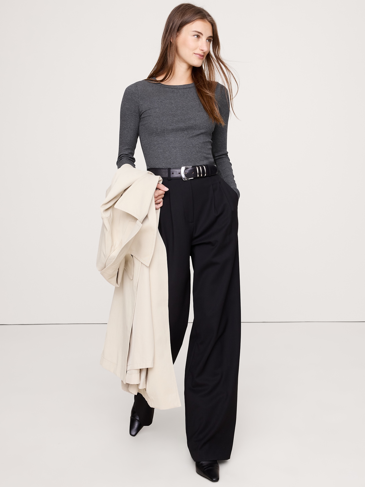 This ribbed t-shirt is cut with a straight hem, crafted from a cotton and modal blend, giving it an even-softer handfeel.