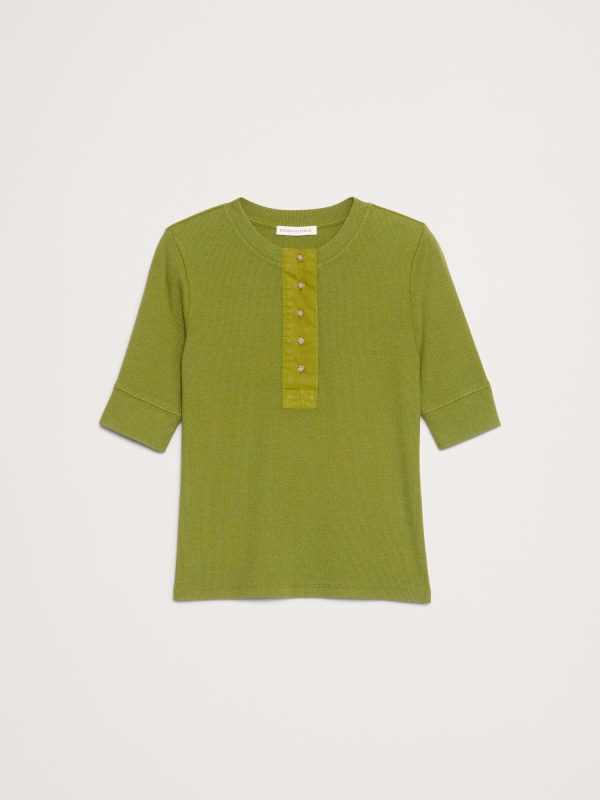 Meet the henley we’ll be reaching for all year. We love the soft, ribbed fabric, the cotton poplin trim, and the body-conscious fit.