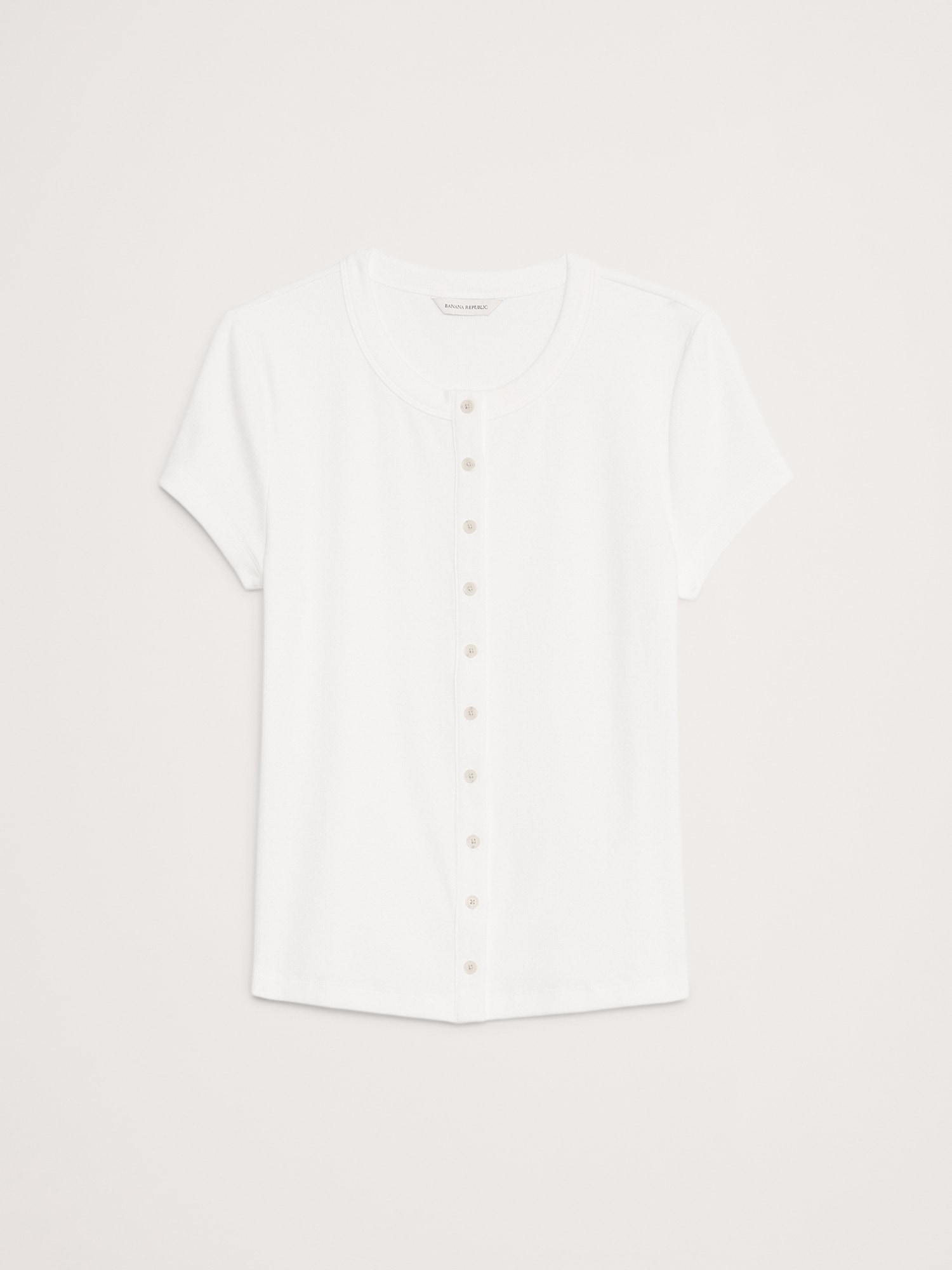 A classic crew-neck tee meets cardigan styling, we kept the fit slim for this Ribbed Top, adding a row of beautiful horn buttons down the front so you can button as high or low as you like.