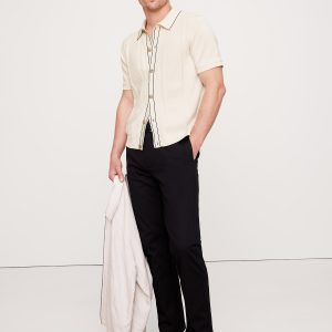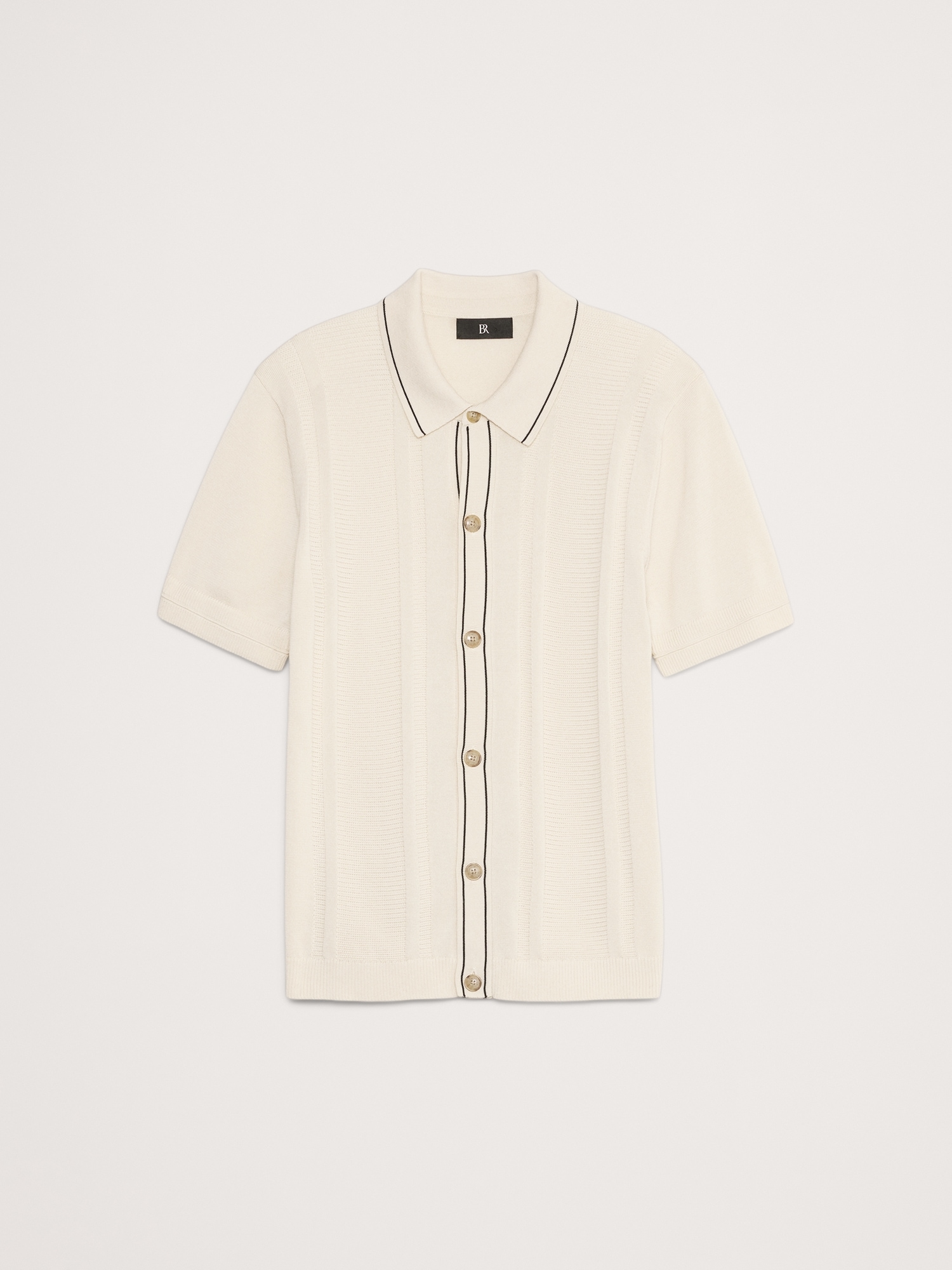 Resort shirt meets sweater polo. We combined the best of both using a variety of ribbed stitches in our 100% certified-organic yarn (so it’s ultra soft).