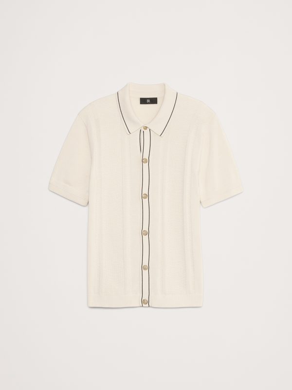 Resort shirt meets sweater polo. We combined the best of both using a variety of ribbed stitches in our 100% certified-organic yarn (so it’s ultra soft).