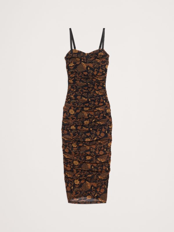 Hard to forget. This slinky midi dress has a corset-inspired bodice and allover ruching, cut in our stretch-mesh for a delightful, next-to-skin feel. Sheath Fit: Sits close to the body with a straight skirt. Sweetheart neckline. Invisible zip at back. Lined to mini-length. #817714