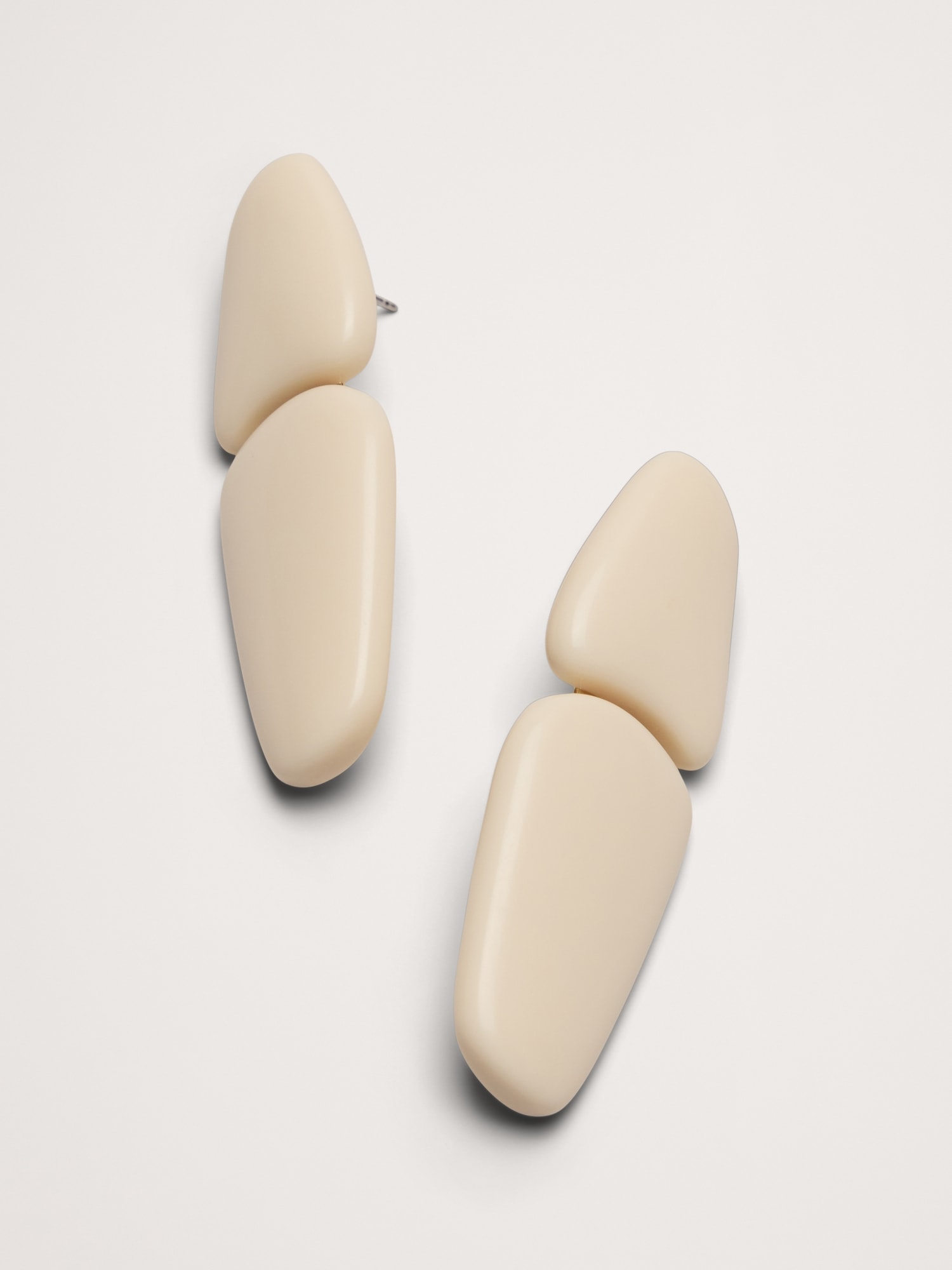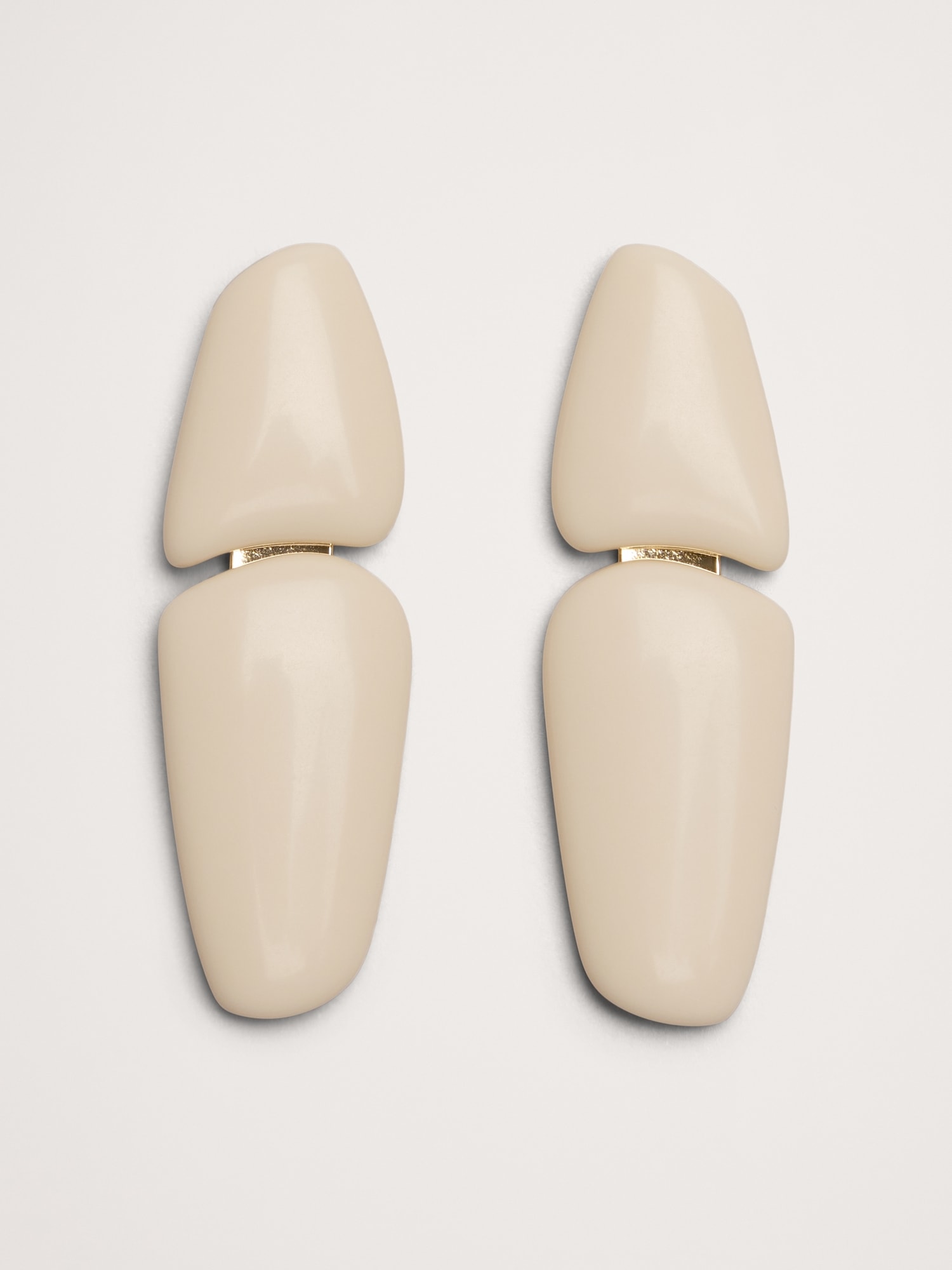 Organically shaped resin pieces are joined with gold-plated brass in these eye-catching earrings.