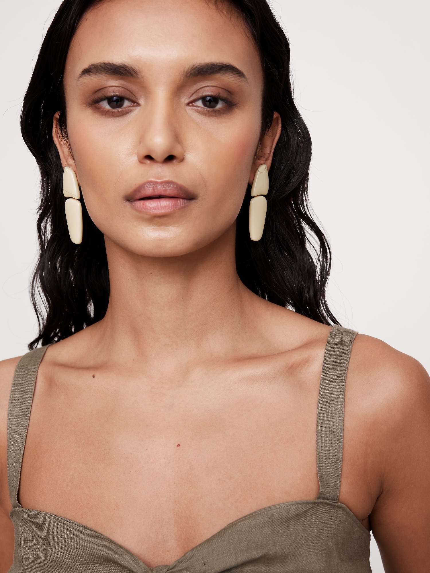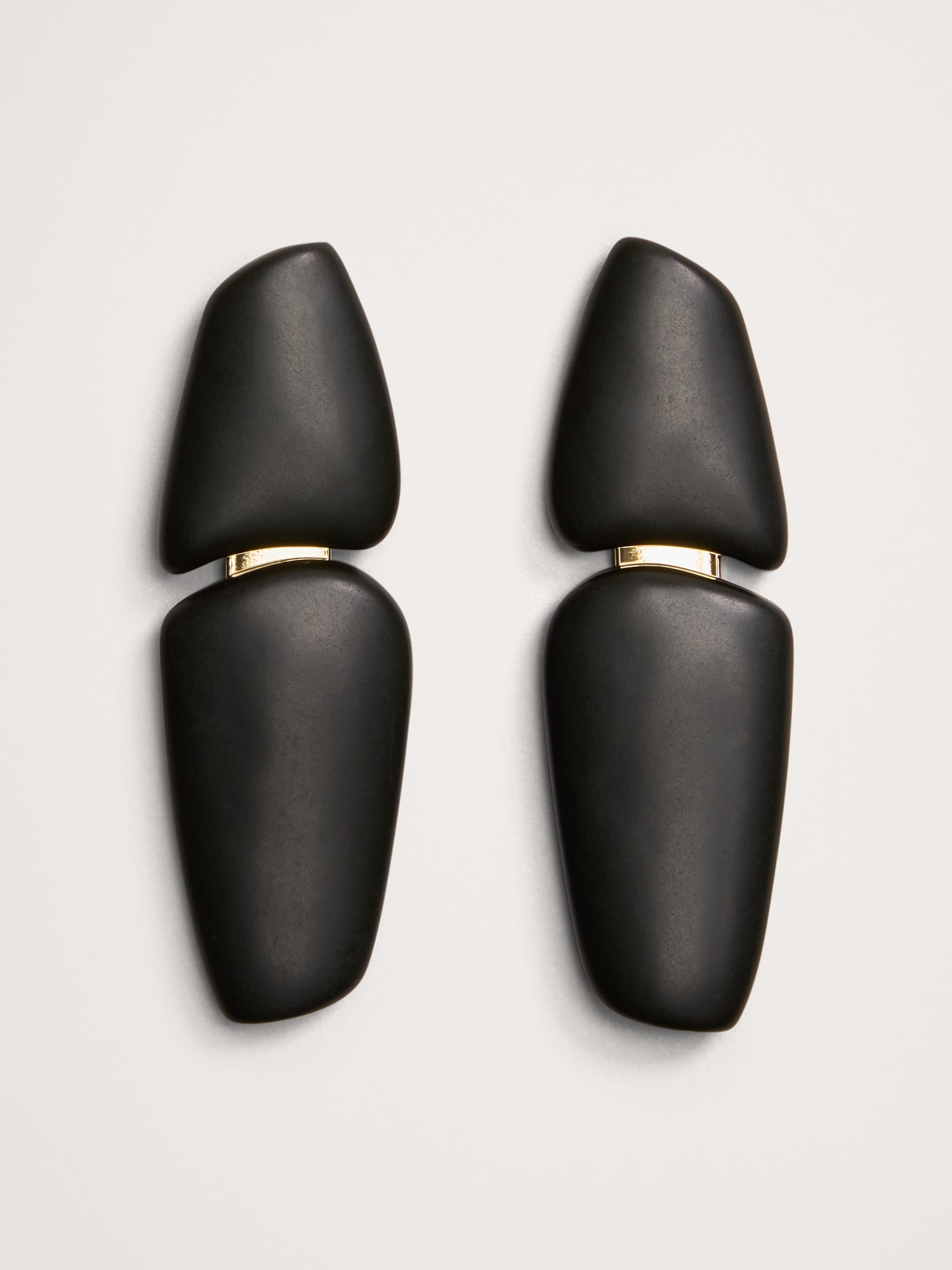 Organically shaped resin pieces are joined with gold-plated brass in these eye-catching earrings.