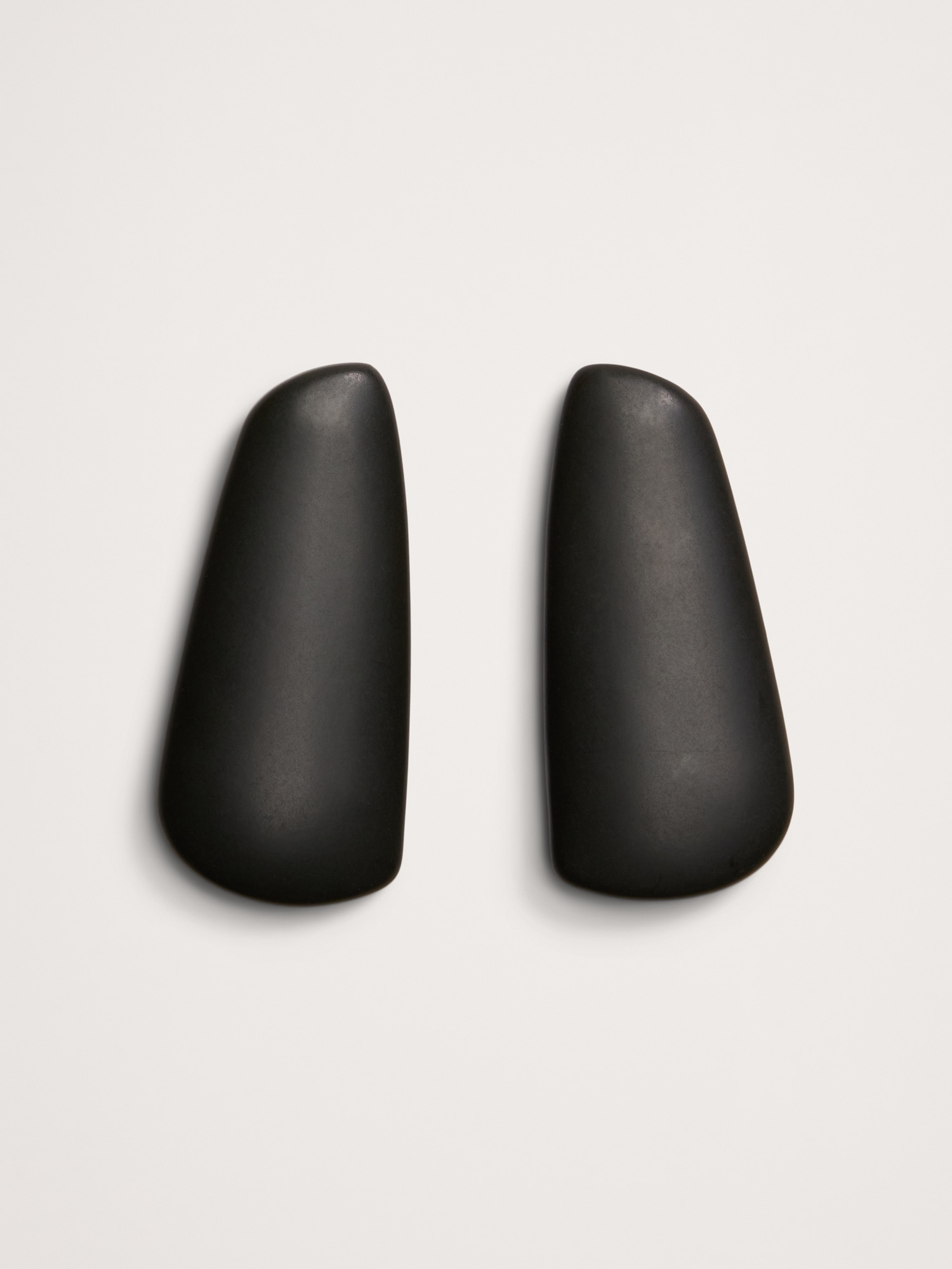 Modern earrings are made of smoothly polished resin in long oblique shapes.