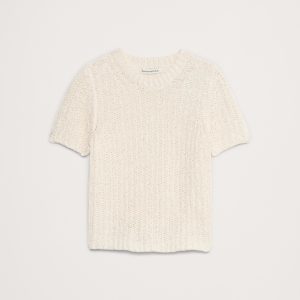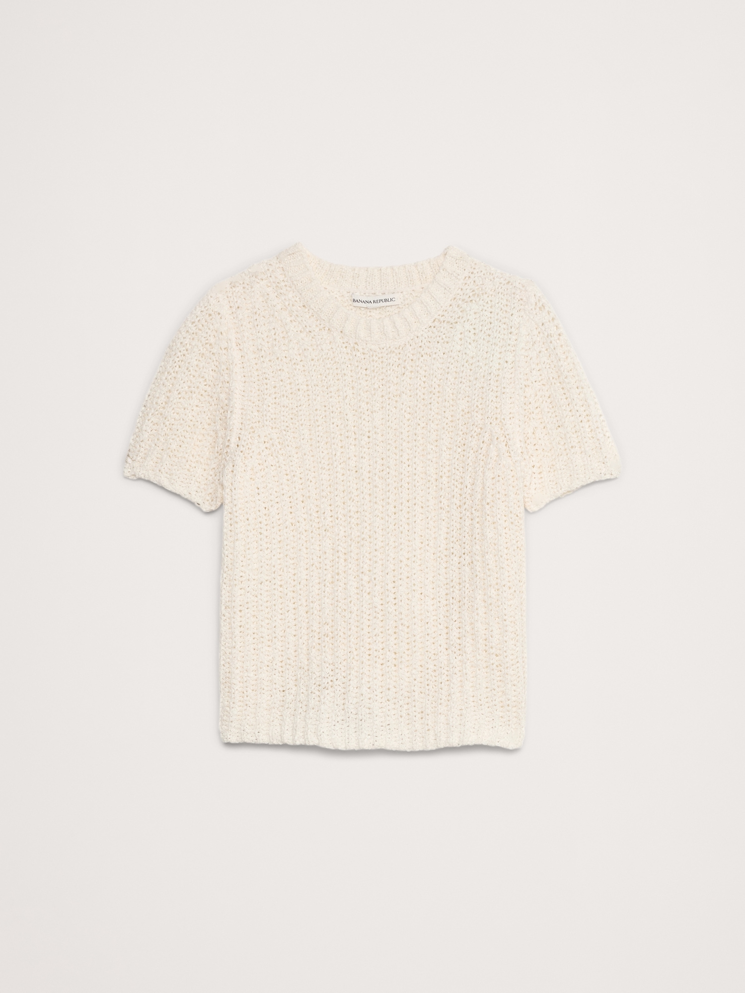 Designed for a slim fit, this sweater’s ribbed texture is enhances by its textured yarn. Style it now with linen shorts and sandals, and pair with pleated high-rise pants and sneakers on cooler days.