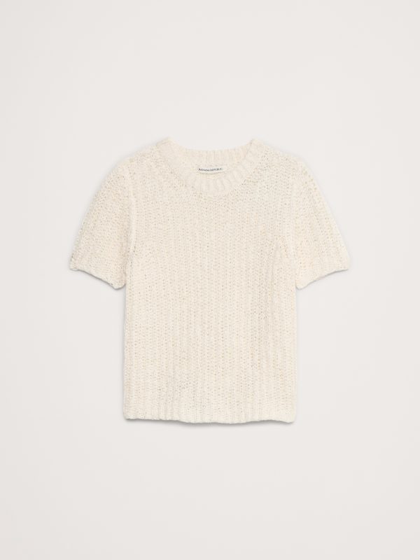 Designed for a slim fit, this sweater’s ribbed texture is enhances by its textured yarn. Style it now with linen shorts and sandals, and pair with pleated high-rise pants and sneakers on cooler days.