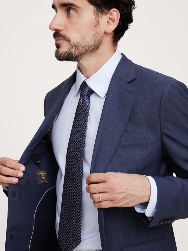 This sophisticated Italian wool suit jacket stands up to warm weather with a luxurious tropical wool fabric—a fabric beloved for its distinctive balance between an open weave and a tighter tension yarn, which gives it the ability to remain breathable while always looking pulled-together. Wrinkle-ResistantSlim Fit: Sits at the natural shoulder with an Italian-style soft shoulder expression. Fitted through the chest and waist.
