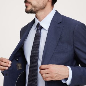 This sophisticated Italian wool suit jacket stands up to warm weather with a luxurious tropical wool fabric—a fabric beloved for its distinctive balance between an open weave and a tighter tension yarn, which gives it the ability to remain breathable while always looking pulled-together. Wrinkle-ResistantSlim Fit: Sits at the natural shoulder with an Italian-style soft shoulder expression. Fitted through the chest and waist.