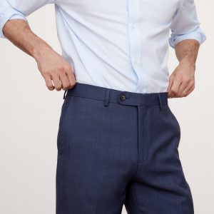 This sophisticated Italian wool suit pant stands up to warm weather with a luxurious tropical wool fabric—a fabric beloved for its distinctive balance between an open weave and a tighter tension yarn, which gives it the ability to remain breathable while always looking pulled-together. Wrinkle-ResistantSlim Fit: Mid-rise. Tapered slim leg.