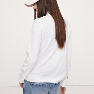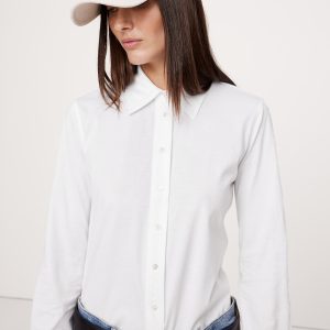 This timelessly tailored long-sleeve shirt is cut from our silky cotton jersey—a fabric we love for its beautiful drape and dressed-up look. Semi fitted. Point collar and button front. Straight hem. #543583