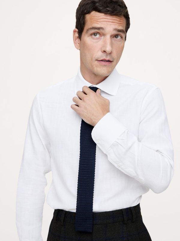 We sourced an incredible fabric for this dress shirt, woven with a base of breathable cotton, blended with cashmere for softness and warmth.