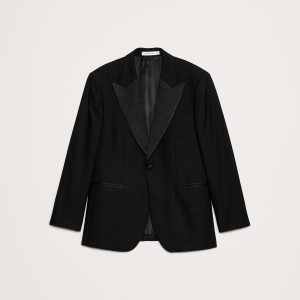 A tuxedo as special as the occasions it’ll see. Note: the Italian wool barathea fabric, the silk faille lapel and covered buttons, and the sharp, roped shoulder construction (so it formal).