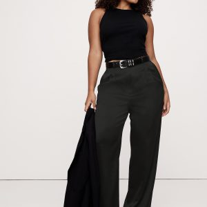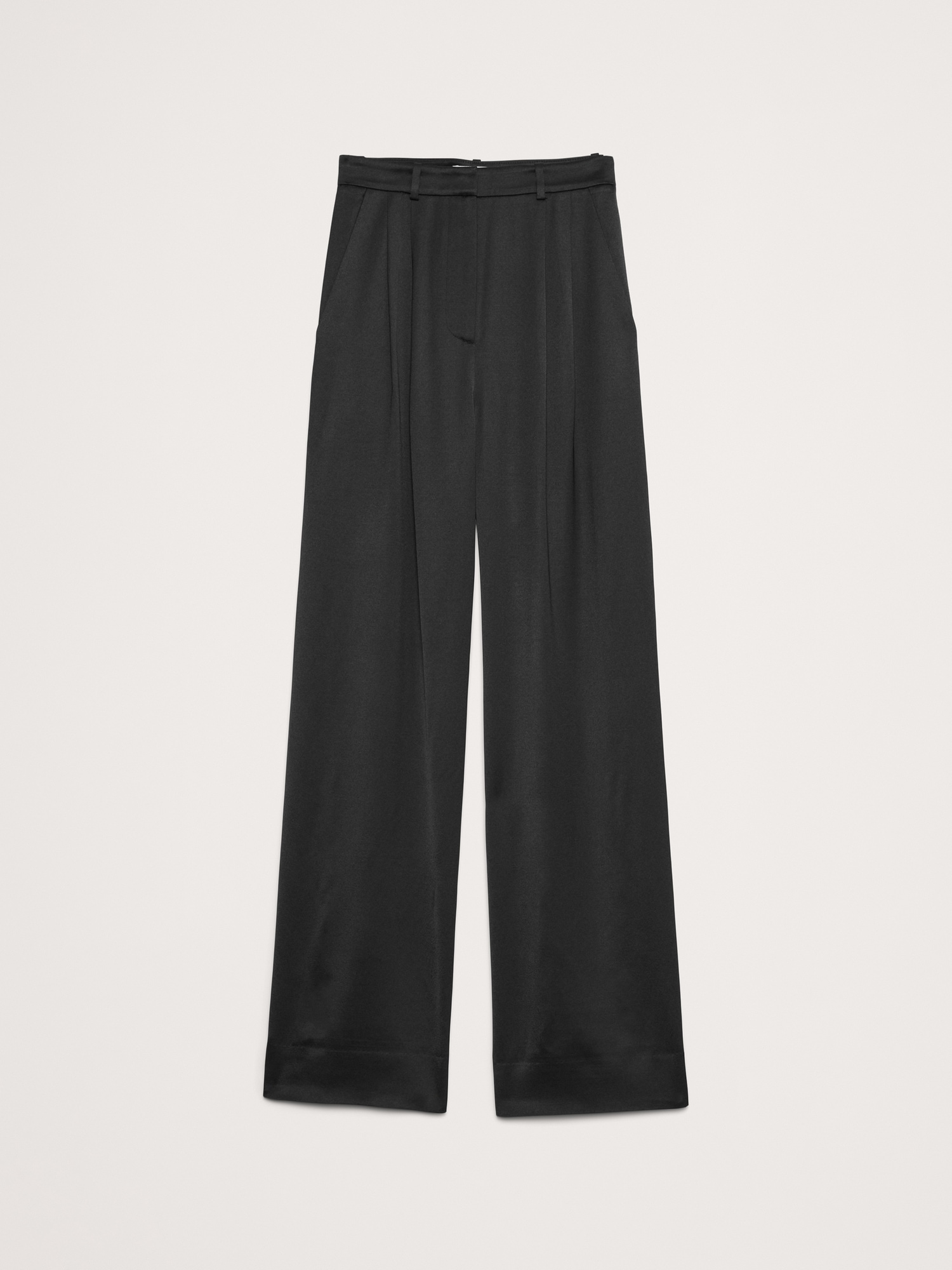Meet the high-rise pants we can’t stop wearing. We cut these wide-leg pants with a double-pleated front for a borrowed-from-the-boys vibe. For fabric, our design team selected an Italian satin that strikes the perfect balance between tailored and feminine.