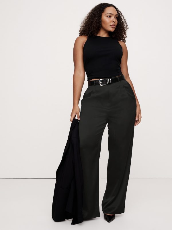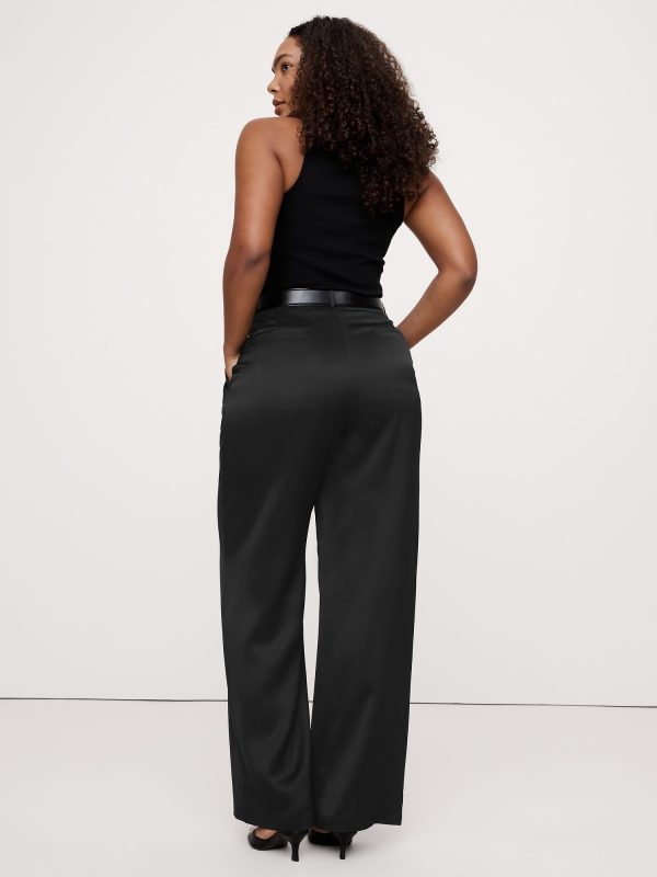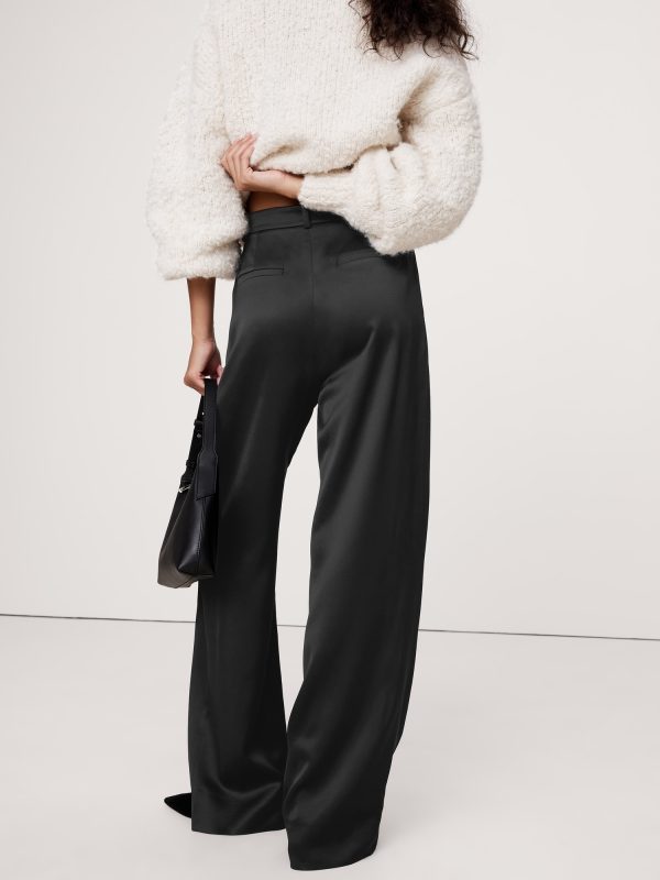 Meet the high-rise pants we can’t stop wearing. We cut these wide-leg pants with a double-pleated front for a borrowed-from-the-boys vibe. For fabric, our design team selected an Italian satin that strikes the perfect balance between tailored and feminine.