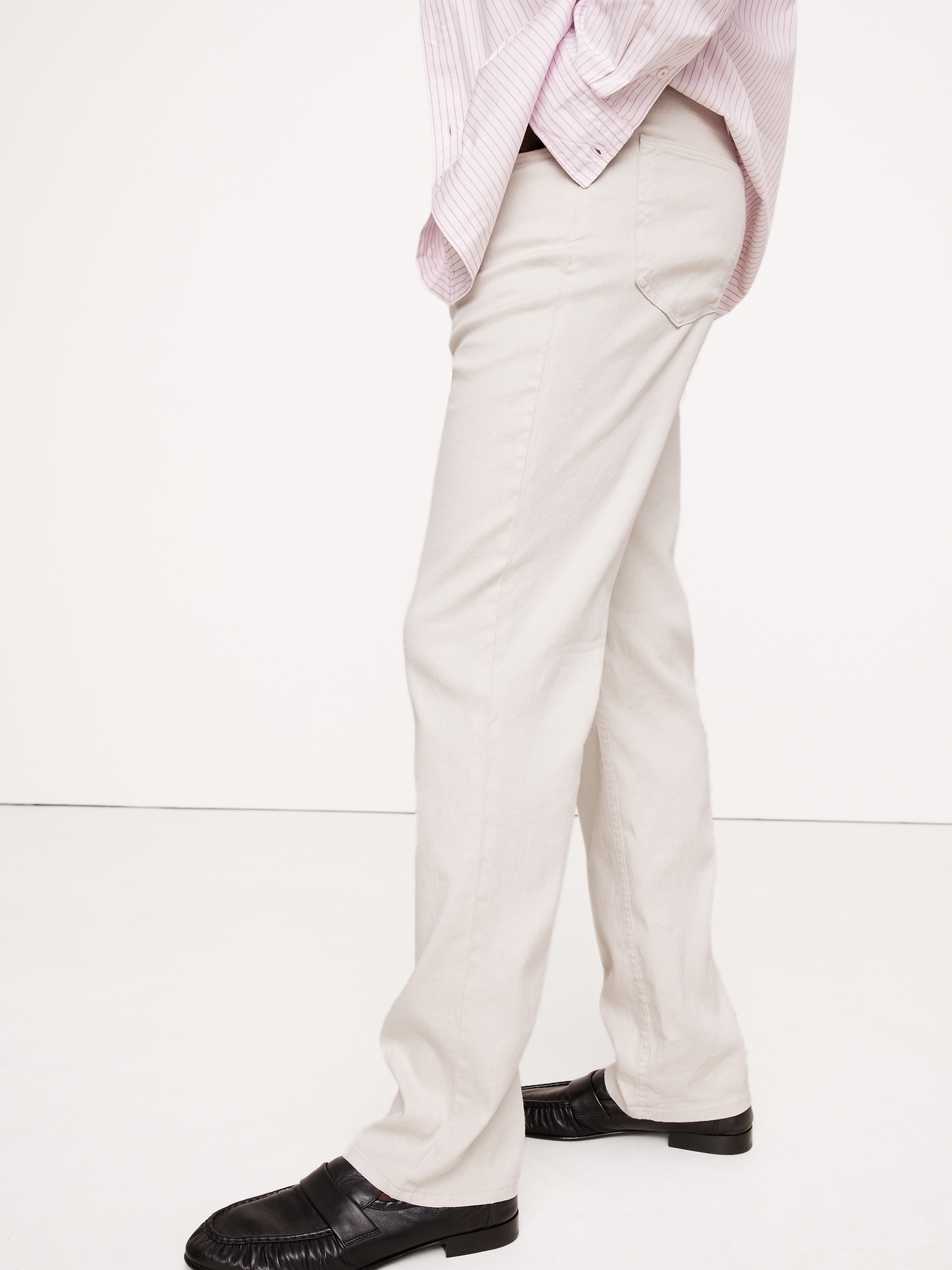 Straight Fit: Mid-rise (11.625\”). Slim through the thigh with a straight leg.