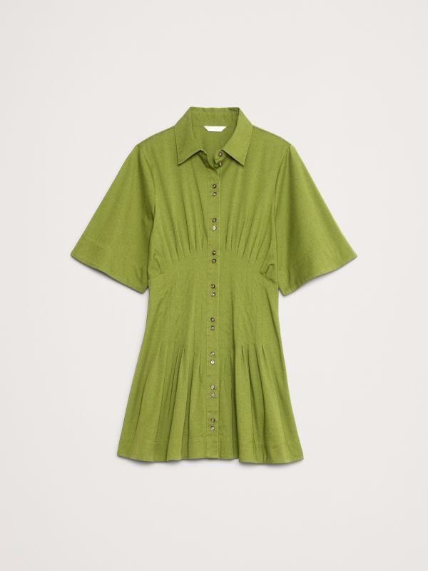 Deconstructed, reconstructed. This mini dress nods at the season’s drop-waist trend with corset-inspired pleats at the waist—in our 100% cotton poplin.