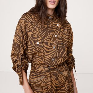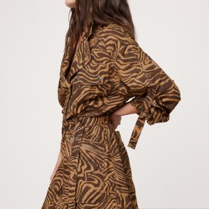 Blouson fit: Relaxed through chest and shoulders, defined waist with a flare skirt.